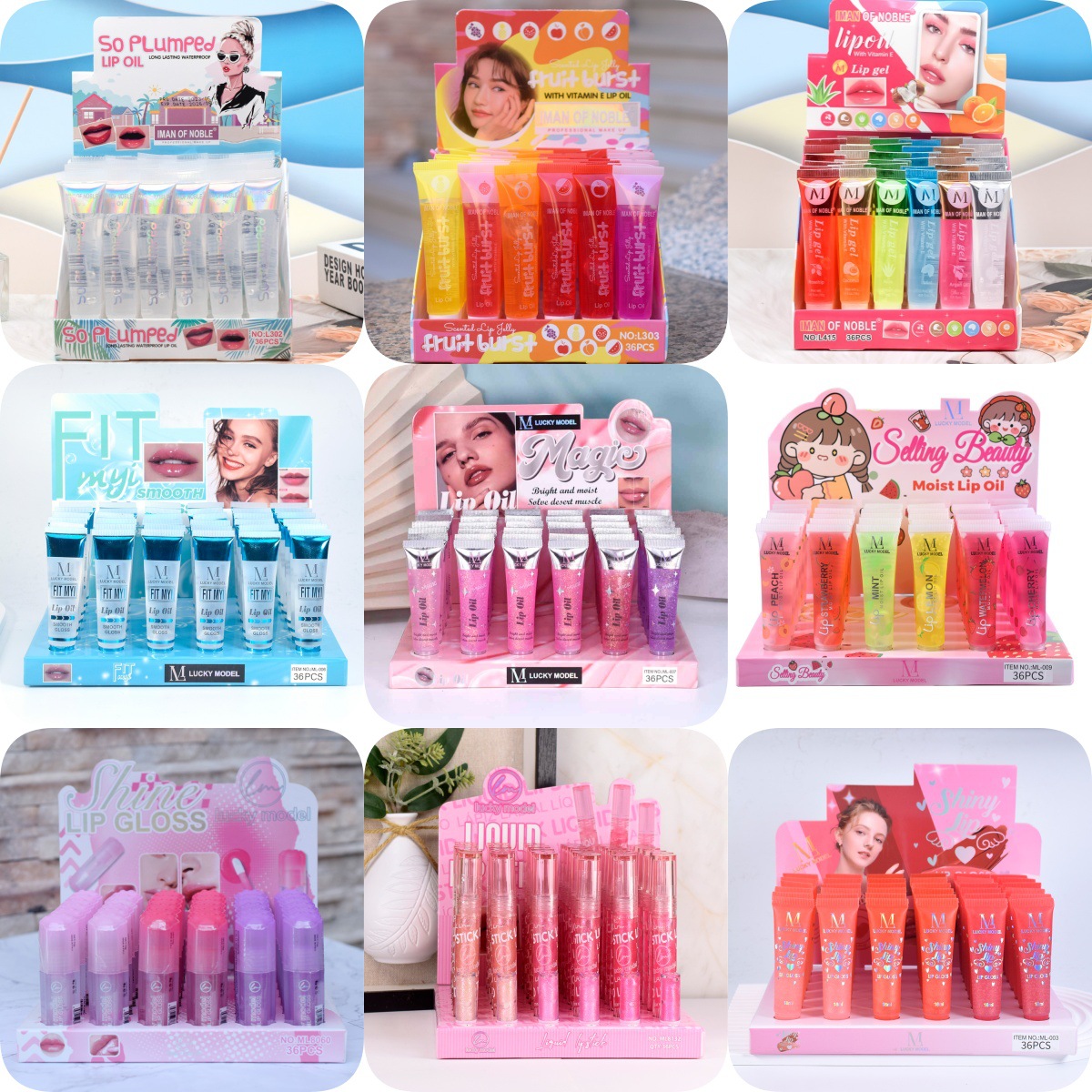 只出口【IMAN OF NOBLE】透明水果味滋润保湿唇油唇蜜36支装