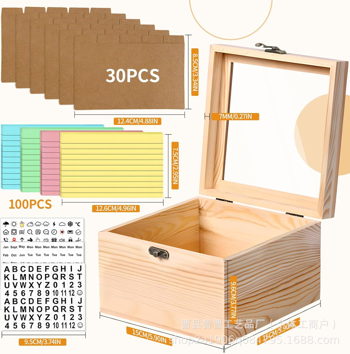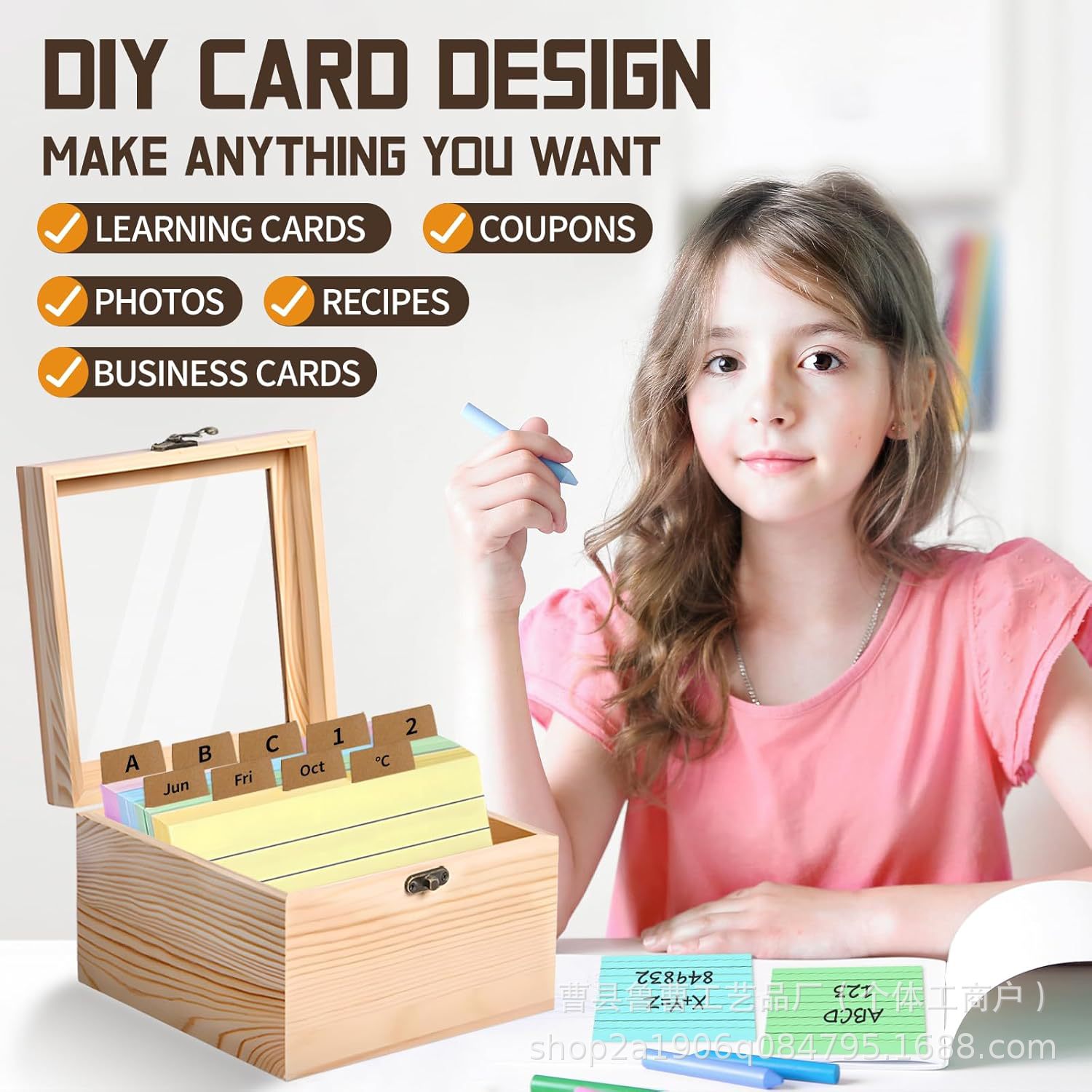 インデックスカードカバン木箱重タイプインデックスカード名刺整理器木制レシピカードケース仕切り付フラッシュカードカバン木箱