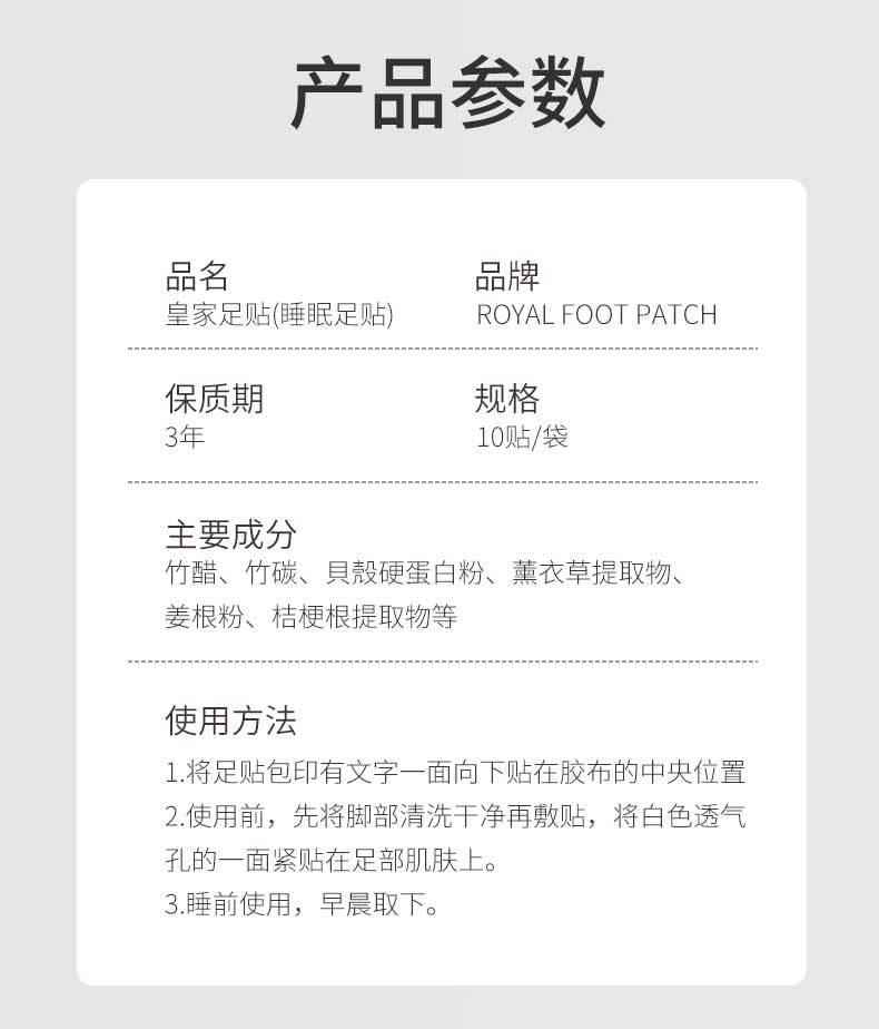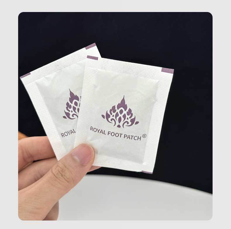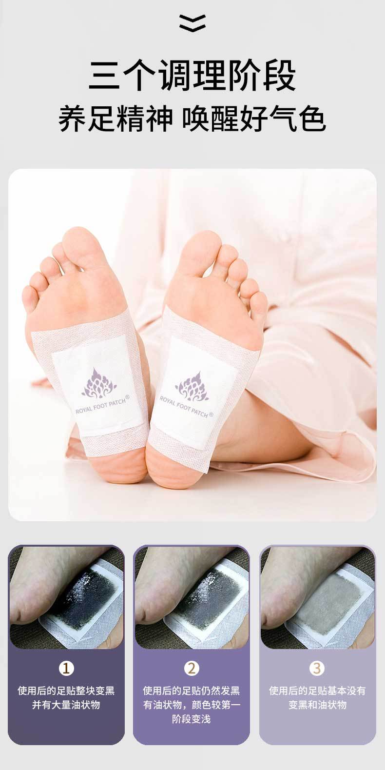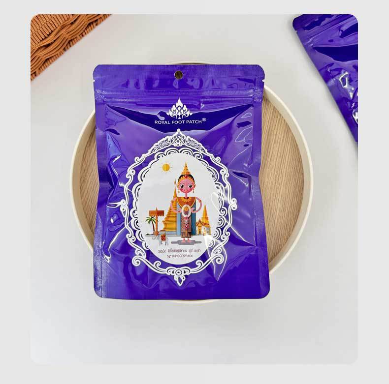 中国語ラベル付き、タイロイヤルフットパッチ、ロイヤルフットパッチ、睡眠用竹酢フットパッチ、体を浄化し、濁りを取り除き、疲労を和らげます。