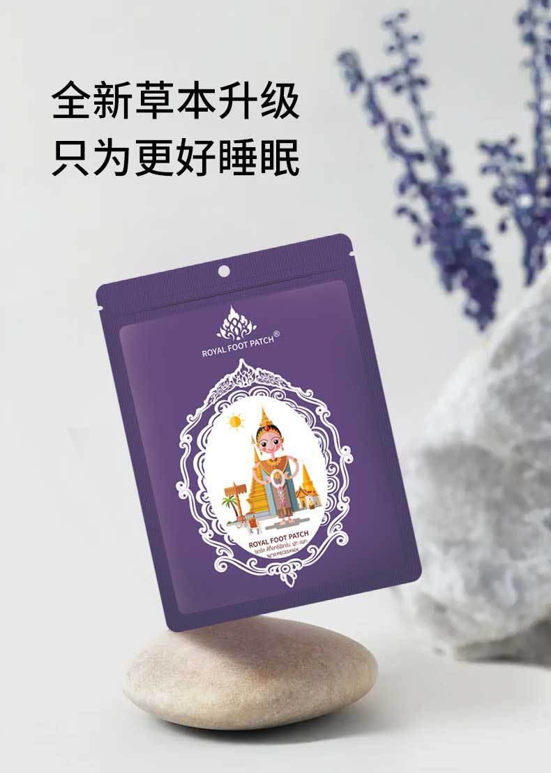 タイROYALロイヤルスリープフットパッチ、気草配合、健康維持、ラベンダー睡眠フットパッチ、10枚入り/袋