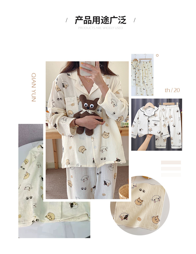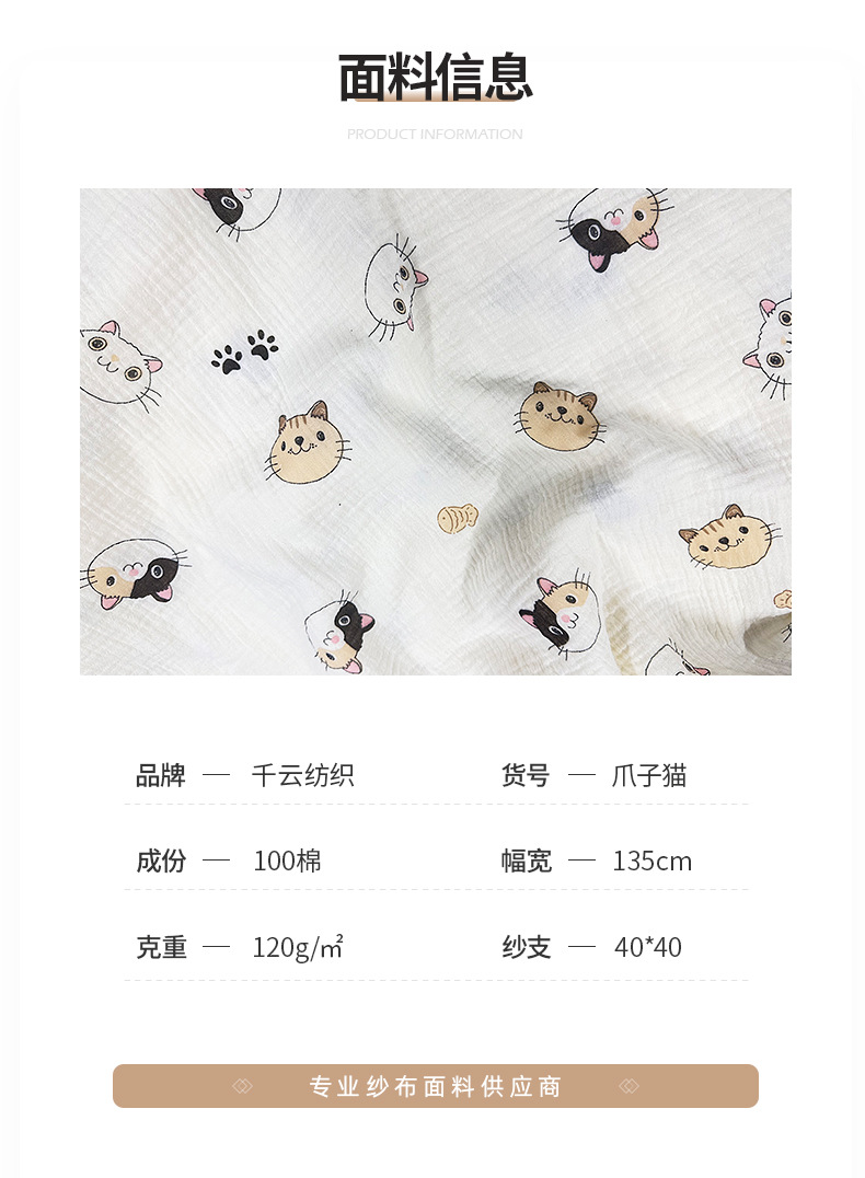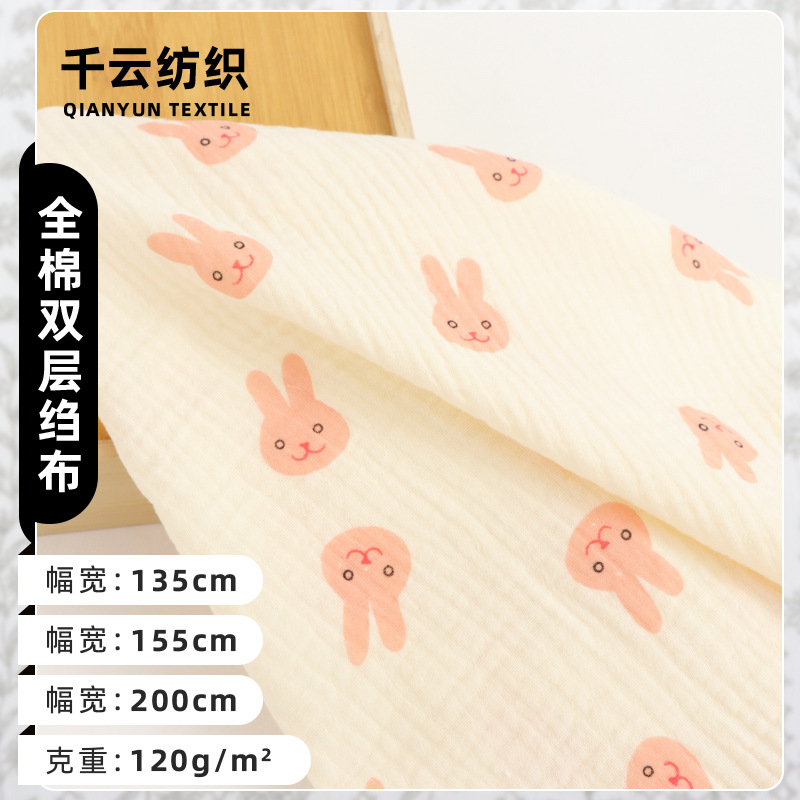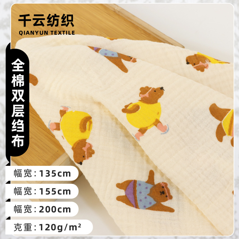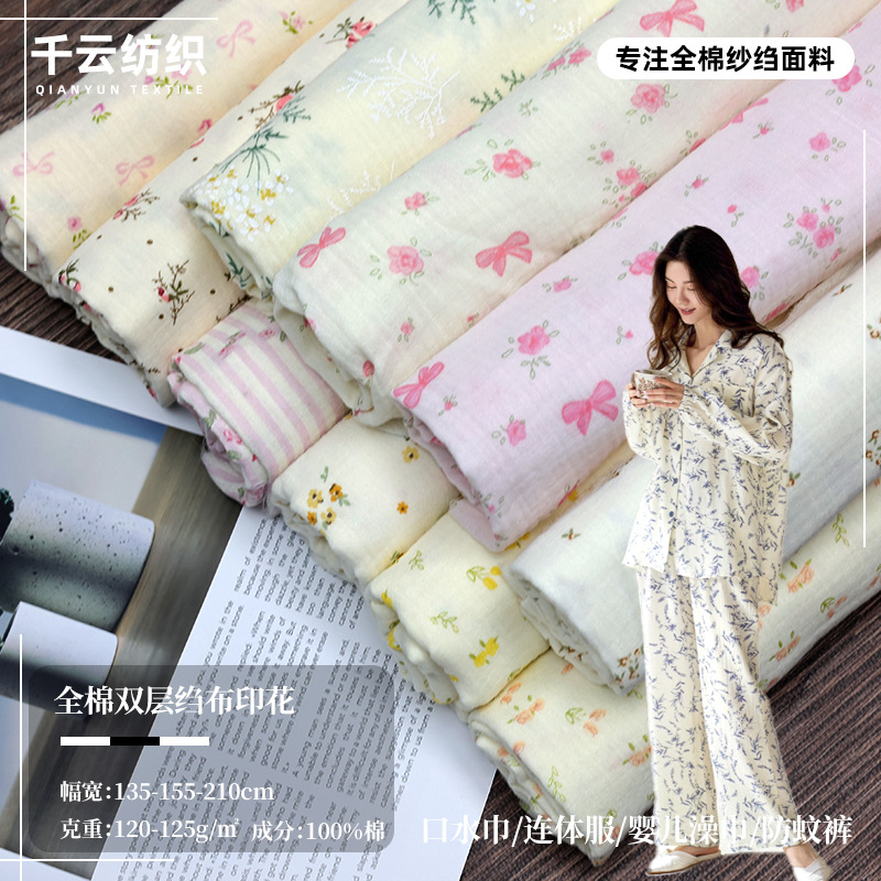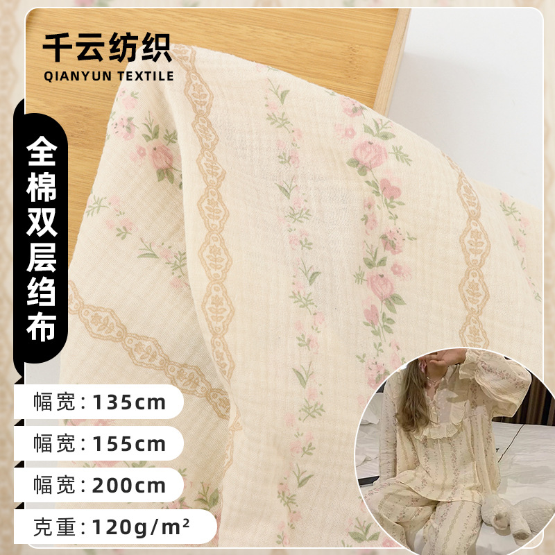 柯桥布料布匹全棉双层绉布印花双层棉纱布料a类家居服睡衣面料