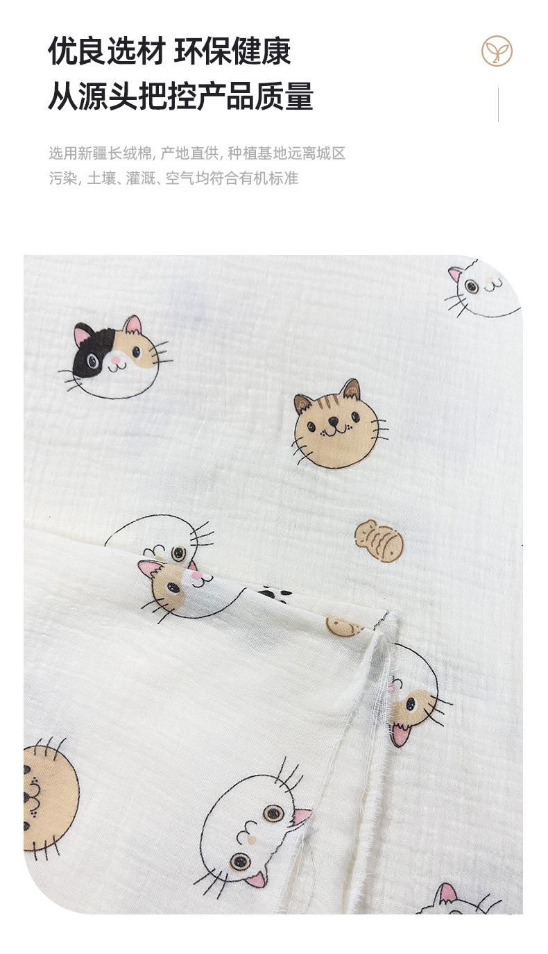 純綿二重プリントガーゼ縮み生地しわ泡糸赤ちゃん宝宝包は家庭服装生地に包まれている