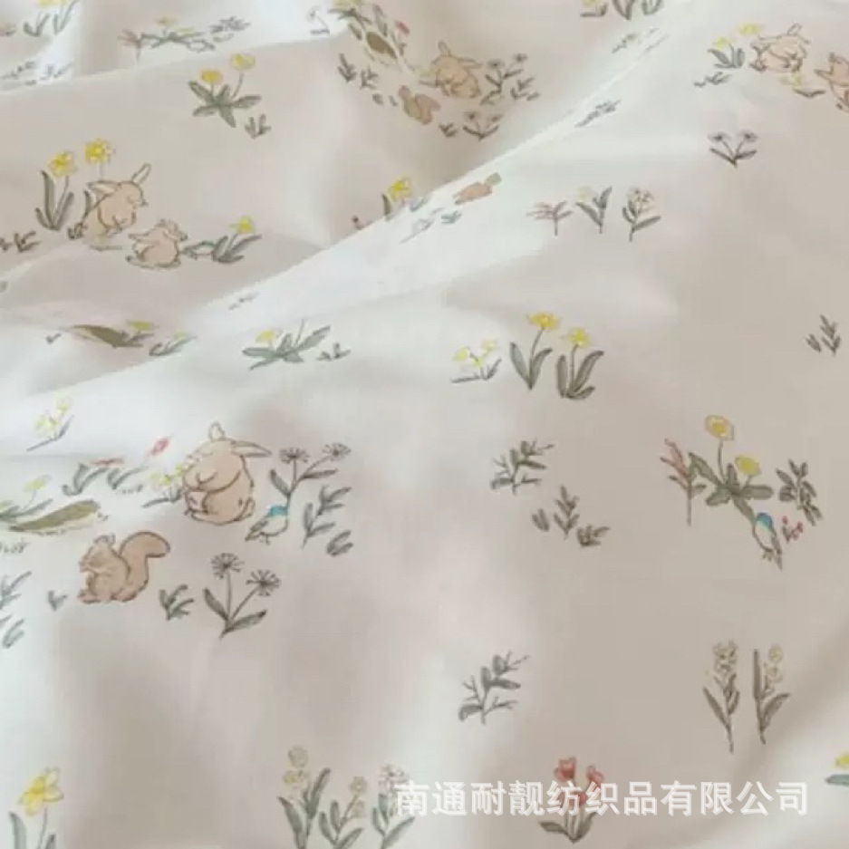 綿100%二重ガーゼ生地、デジタルプリントの青い花柄ウサギ柄、二重綿クレープ生地、洗濯済みベビー用ホームウェア生地