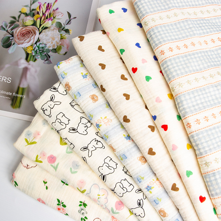 純綿二重ガーゼバブルシルクプリーツテクスチャ生地ホームウェア綿クレーププリントベビー服パジャマ生地
