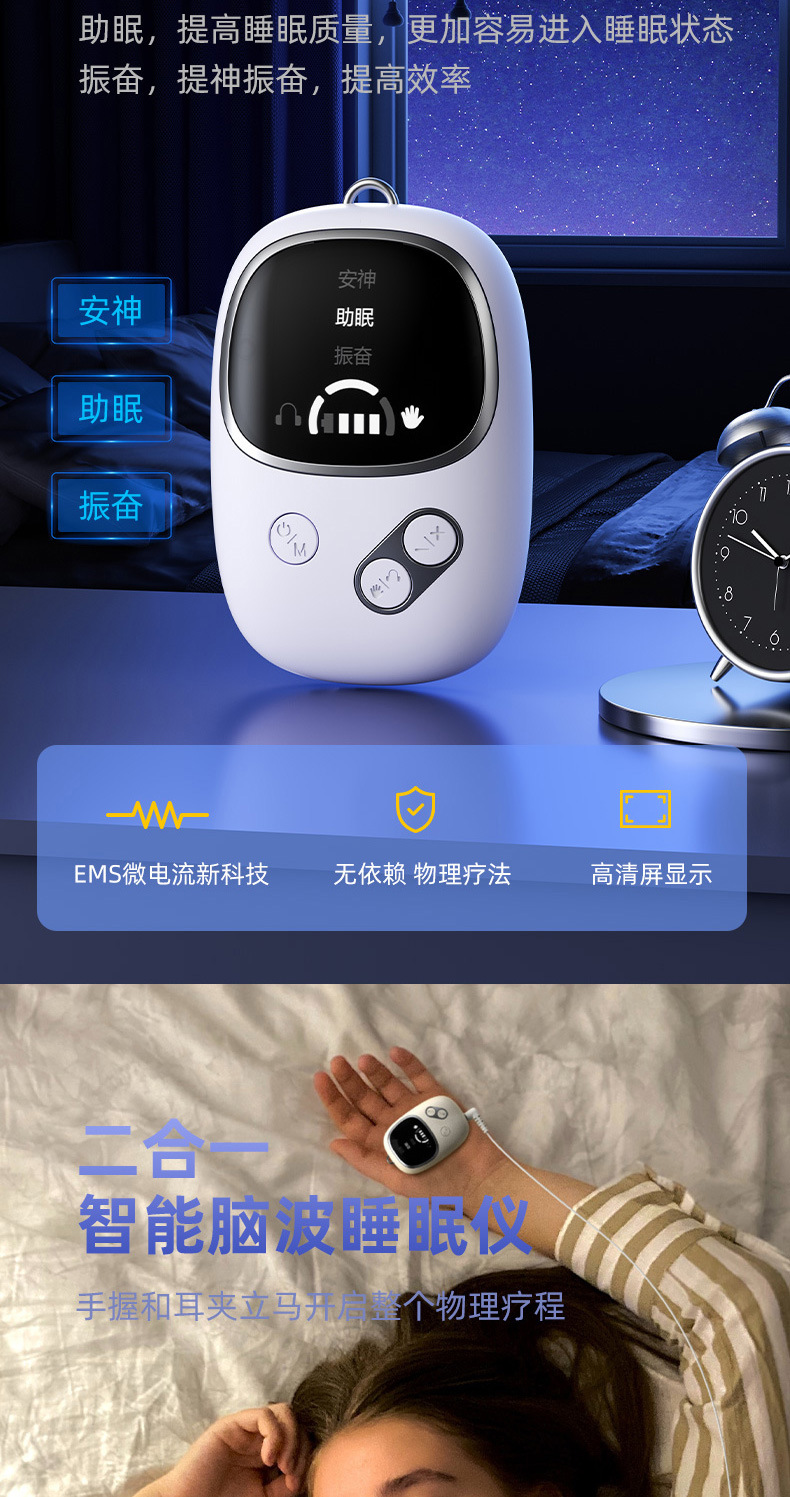 Amazonクロスボーダーtemuスマートハンドヘルド睡眠器具、微電流睡眠アーティファクト、耳クリップ付きの安眠グッズ