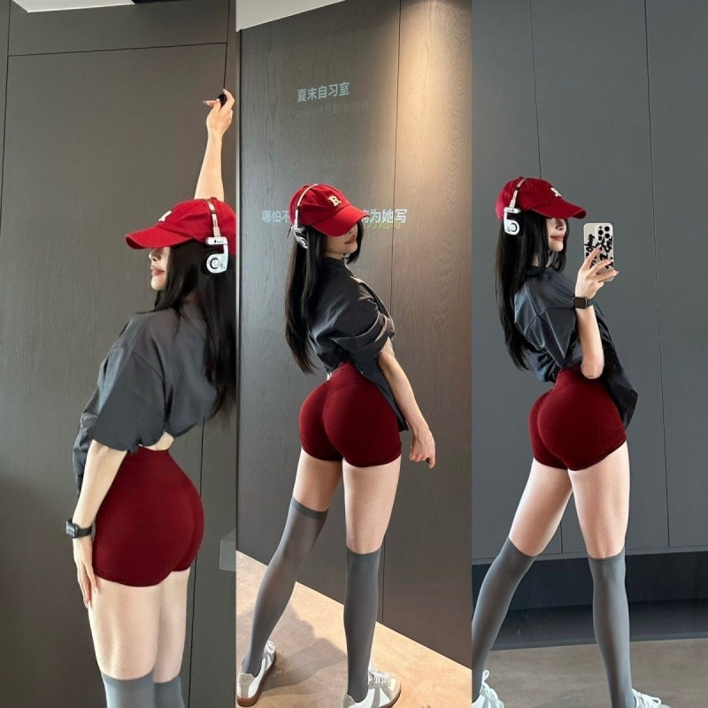 ホットガールフィットネスピーチスリーポイントパンツストレッチハイウエストおなかコントロールタイツ高弾性ランニングスポーツ速乾ヨガショーツ