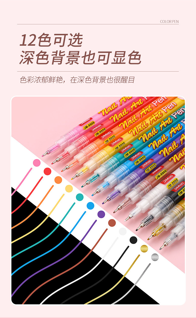 12 色ネイルアートペン DIY 手描きプルペンインターネット有名人ペイントペンクロスボーダーホットアクリルペイント 0.5 ニードルペン