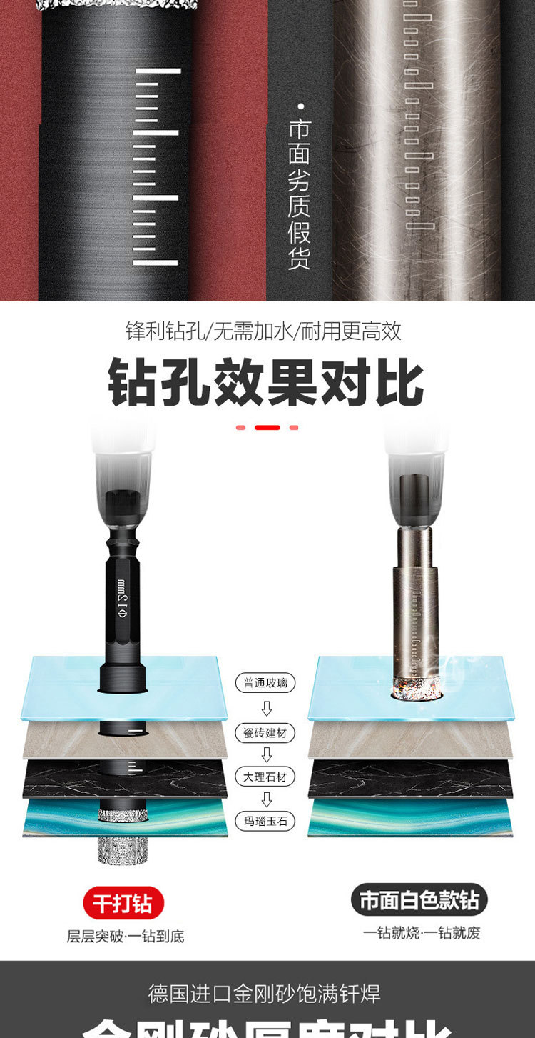 工場直販セラミックタイル穴あけドリルビット、乾式タイルガラス、オールセラミックガラス化タイル専用大理石穴あけ器