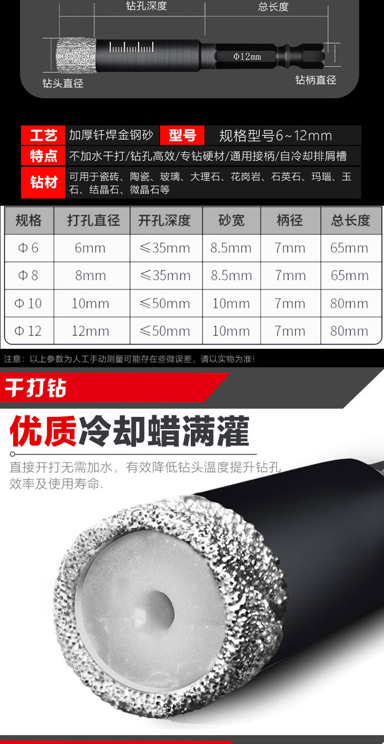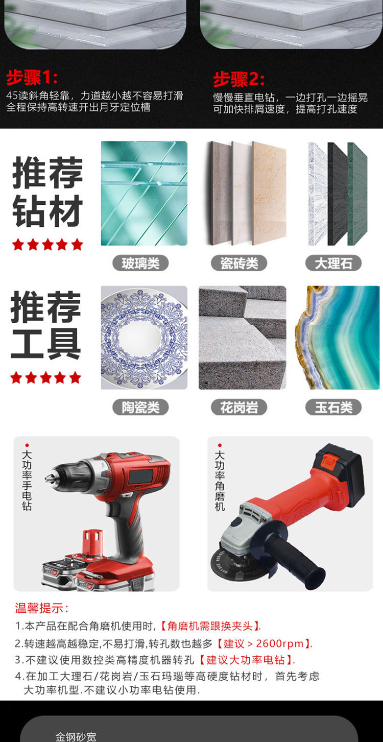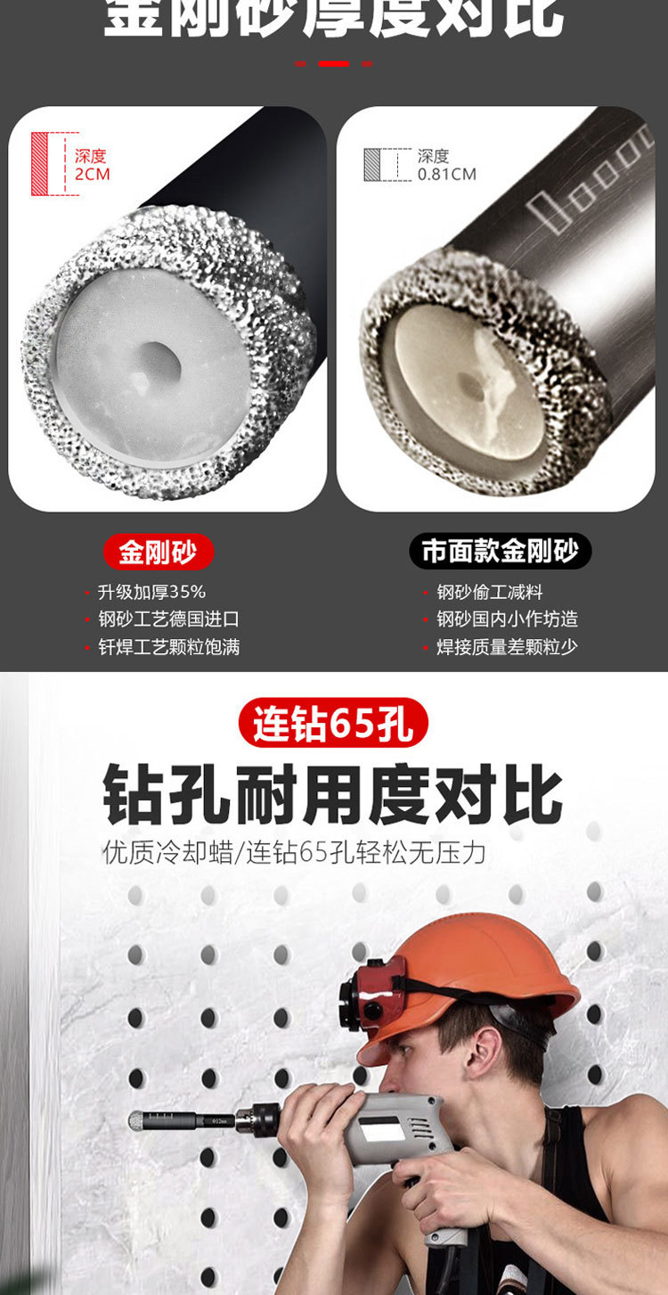 众士匠钎焊金刚石开孔器全瓷砖石材玻璃玉石陶瓷打孔钻头