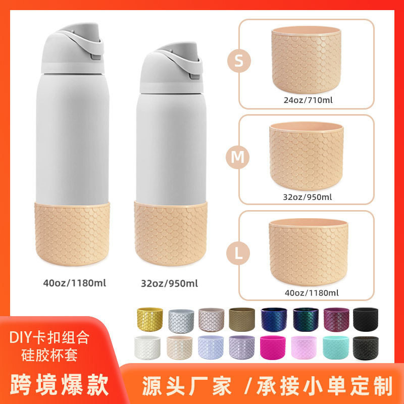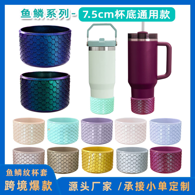 魚鱗紋シリカゲルカップカバー氷覇カップカバースポーツ水筒宇宙カップ底カバー車載カップシリコンカバー卸売り