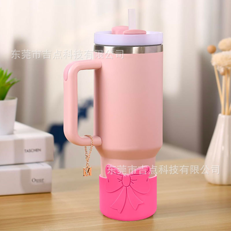 クリエイティブスタンレーシリコンカップカバーリボン形状断熱カバーアウトドアスポーツアイスカップ動物カップ底カバー