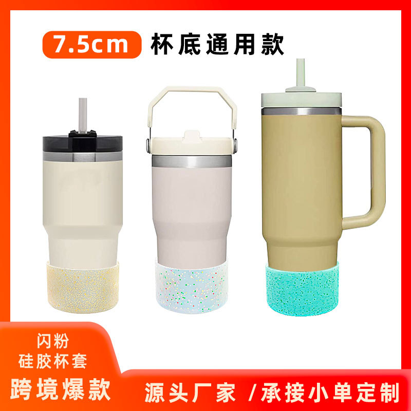 創意フラッシュ粉シリカゲルカップカバー半透明運動水筒カップ底部保護カバースタンリー夜光底部ボトルカバー