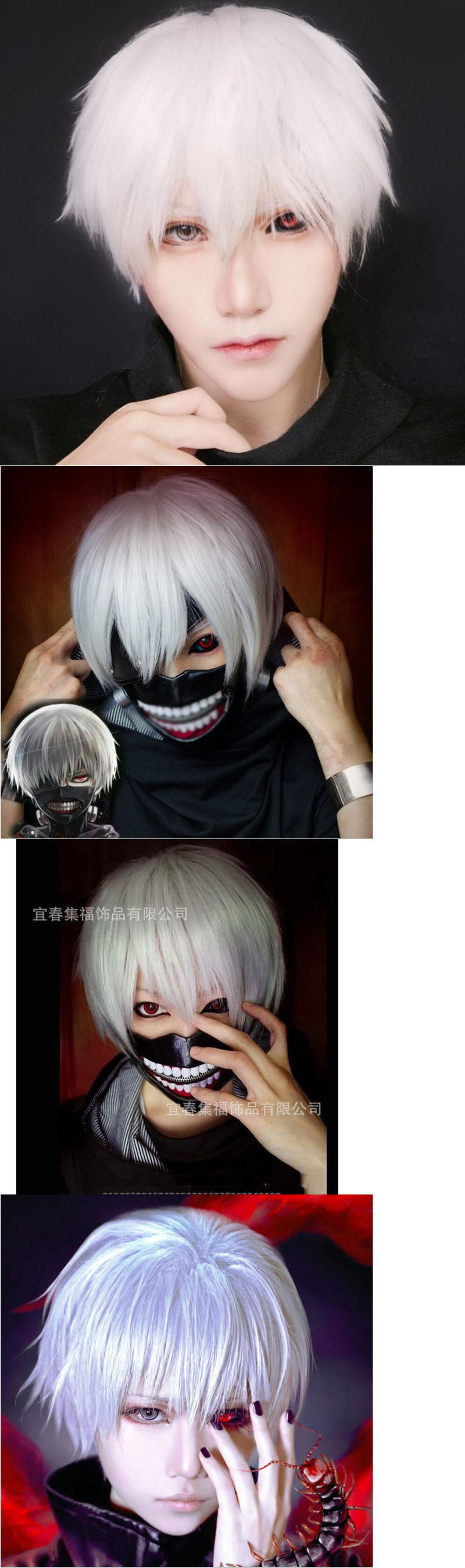 二次元アニメコスプレウィッグ偽毛東京グール/金木研ユニセックスショートヘア