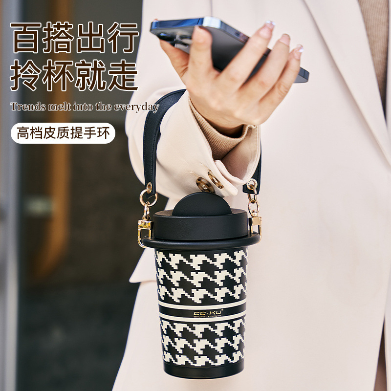 高档保温杯女生高颜值水杯手提外带咖啡杯便携式随行杯子办公室