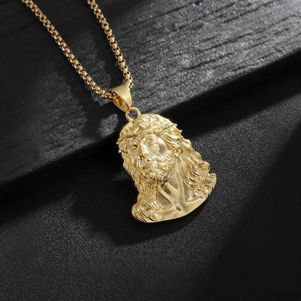 国境を越えたレトロなファッション欧米鋳造いばらの顔ペンダントパンクヒップホップ男性チタン鋼ネックレス