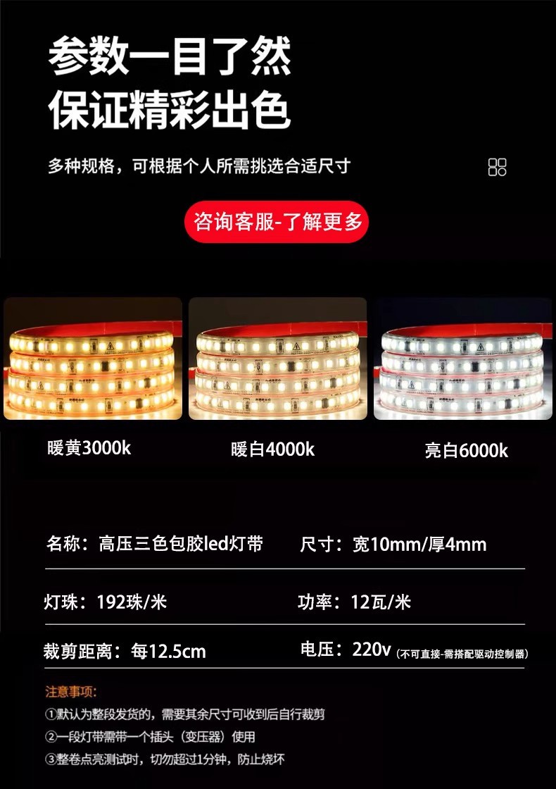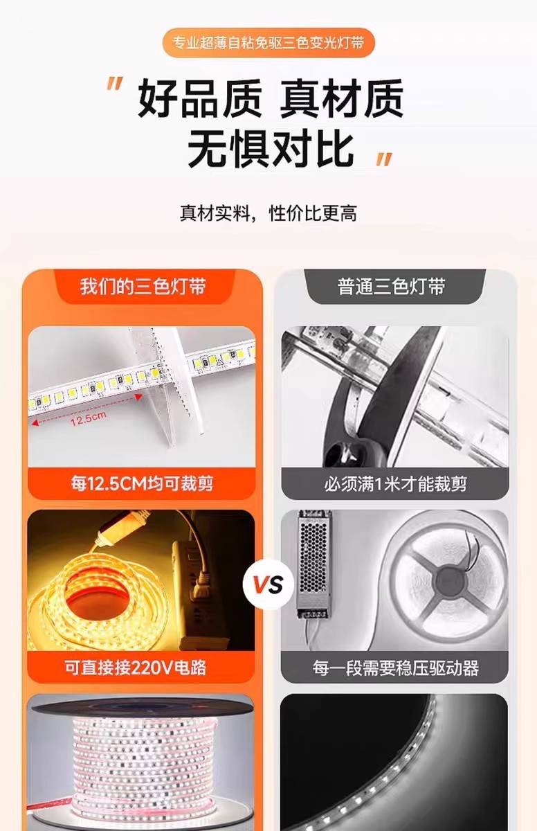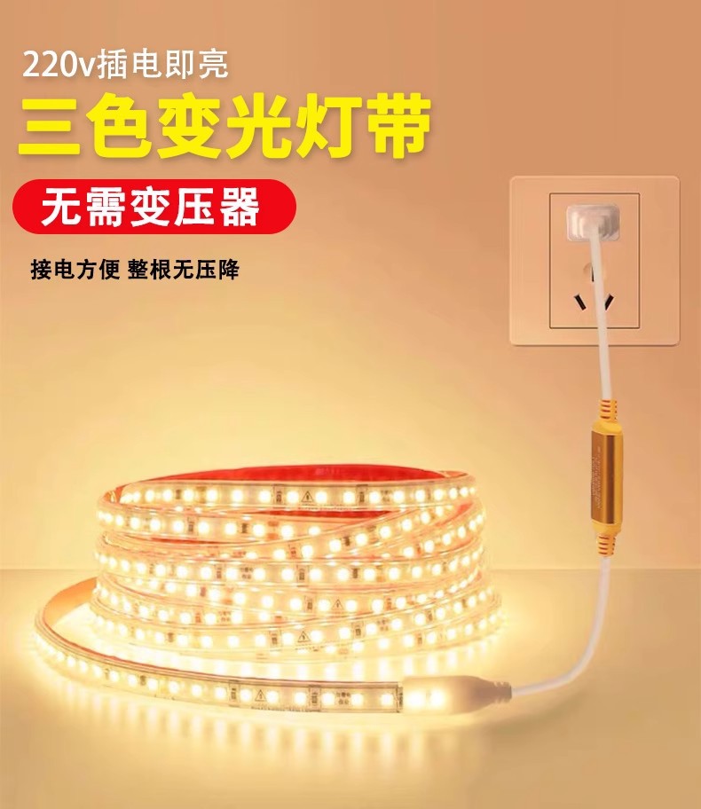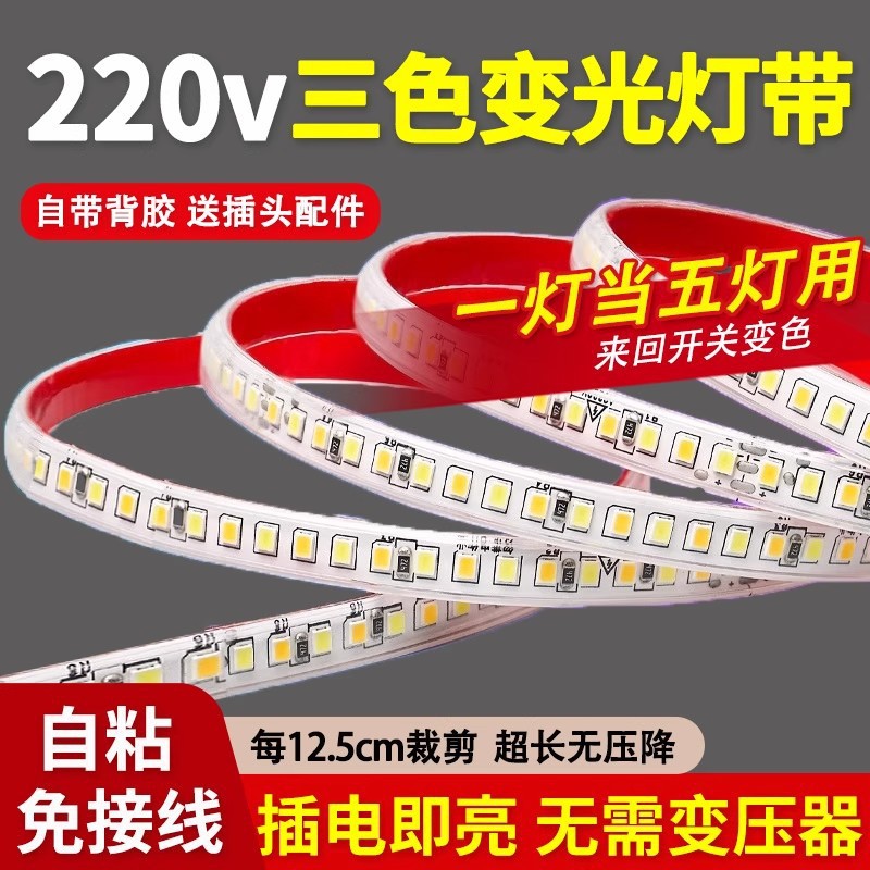 [3色調光] ウォームミディアムホワイト - 1メートルあたり192個のライト - 裏面に粘着剤が付いています。,[3色調光] ウォームブルーとパープル - 1メートルあたり192個のライト - 裏面に粘着剤が付いています。,ライトストリップ用の特別なプラグ1個,【2m】新製品 - 3色調光192灯 - 粘着剤付き - 12.5cmカット可能▲白色光 + 自然光 + 暖色光▲+無料のプラグ1個