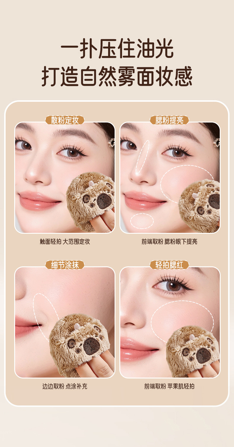 Laipin Shangge Meng Bear Guaiguai 長繊維パウダー パフ 植毛 柔らかく、快適、肌に優しい、濃厚なルース パウダー ブラッシュ メイクアップ