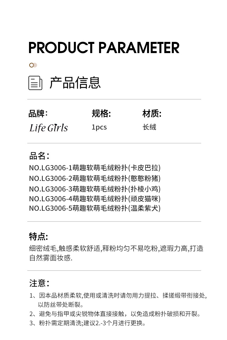 Life Girls萌趣软萌毛绒粉扑植绒舒适亲肤厚实定妆散粉柔软气垫
