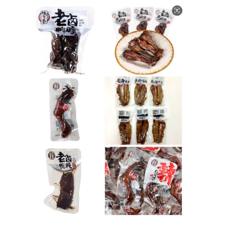 銭家祥鴨足の煮込みオリジナル味 500g、銭家祥鴨足の煮込みスパイシー味 500g、銭家祥鴨足の煮込み 2 つの味を混ぜた 500g、銭家祥鴨足の煮込み