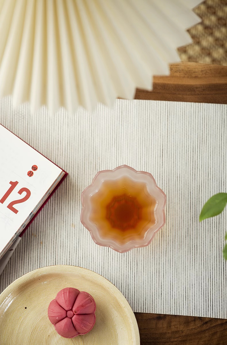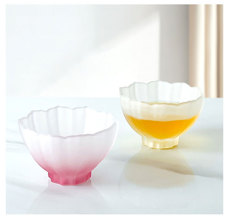 ピンクのすりガラス小茶杯、桜模様ガラス茶杯、和風茶杯、槌目模様酒杯、卸売