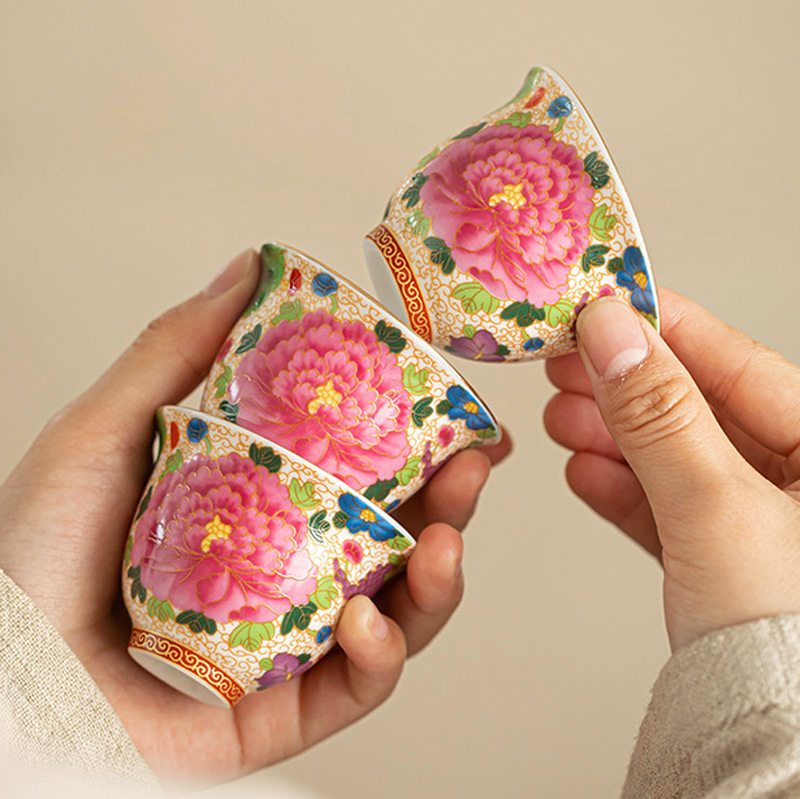 宮廷風エナメル彩陶磁器主人杯大サイズ個人専用カップ工夫茶器家庭用高級反口杯