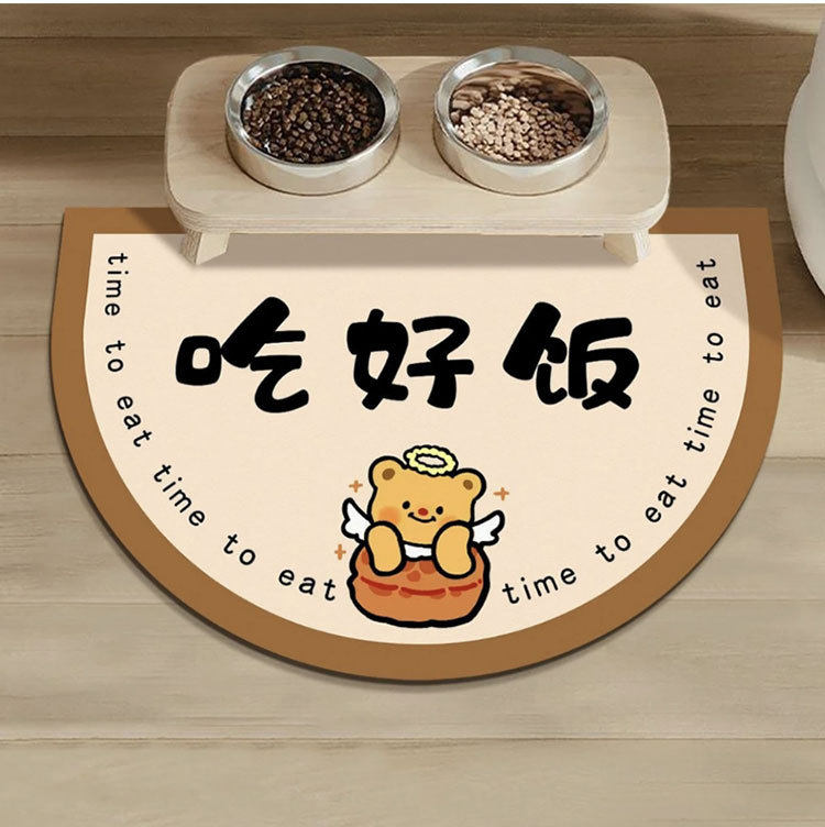 半円形の食事と食事ユニバーサル水速かわいい無洗浄犬泥猫ペット漫画防水マット珪藻土フロアマットペット