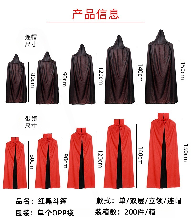 万圣节披风成人儿童cos死神巫师斗篷黑红披风双层巫婆吸血鬼披风