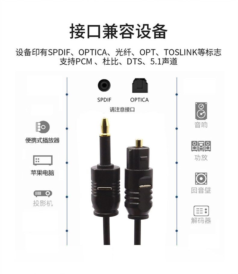 甬威SPDIFデジタル光ファイバオーディオラインToslink角頭回転3.5mm丸頭対応5.1/7.1音響