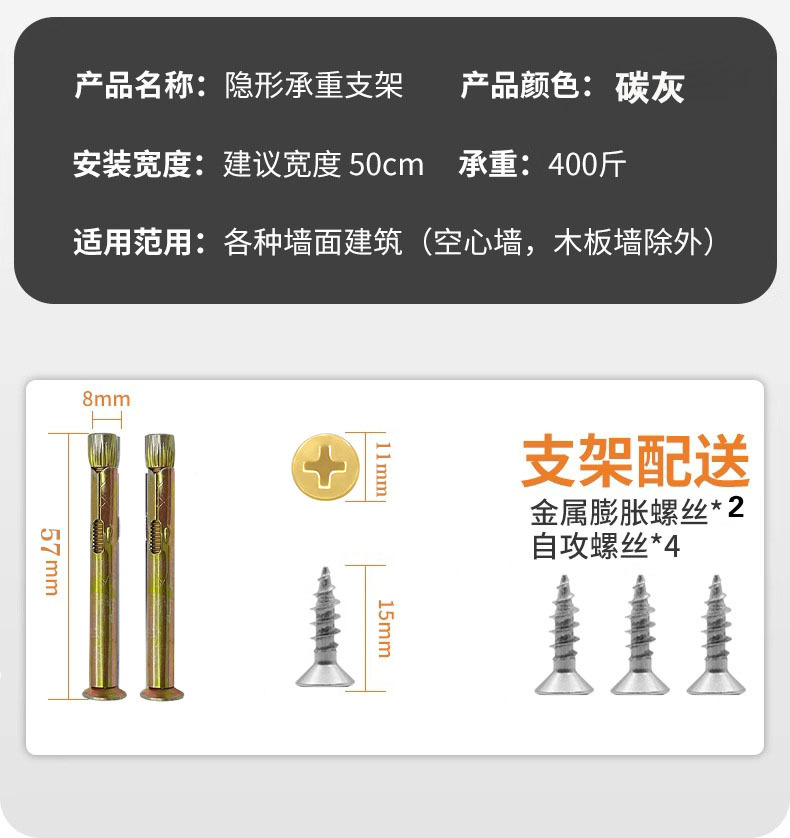 不锈钢T型三角支架电视柜悬浮加厚墙面承重置物隐藏隔板固定托架
