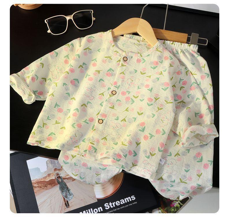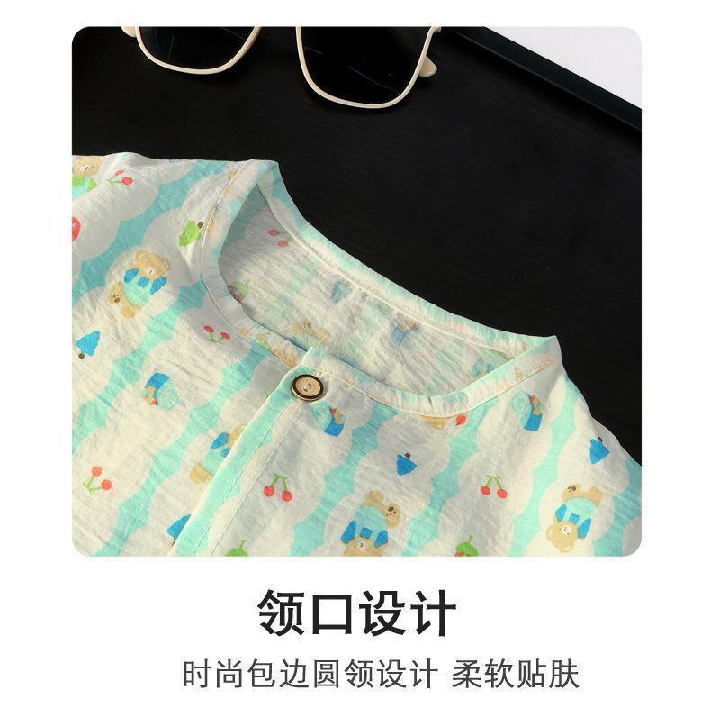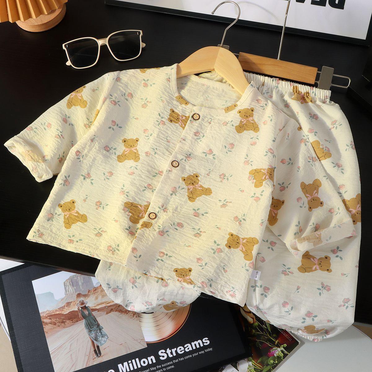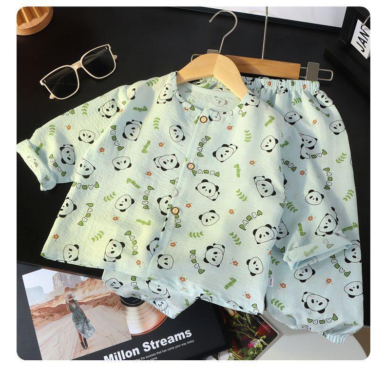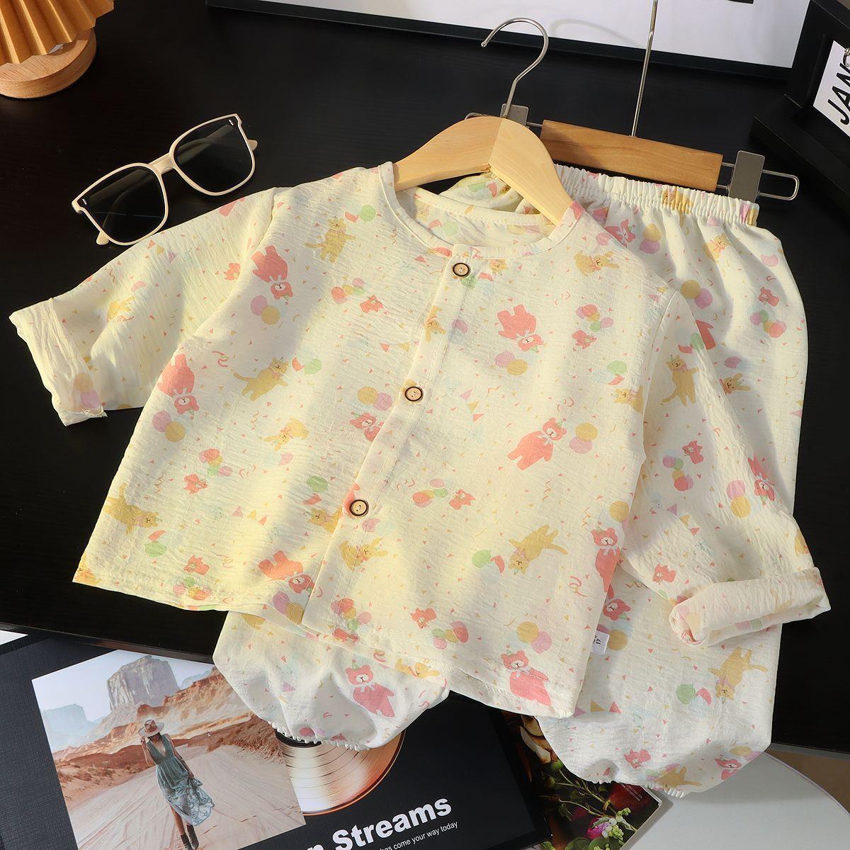春と秋のベビー夏ツーピースパジャマ薄い新しい女の子空調服漫画子供ホーム服セットなし