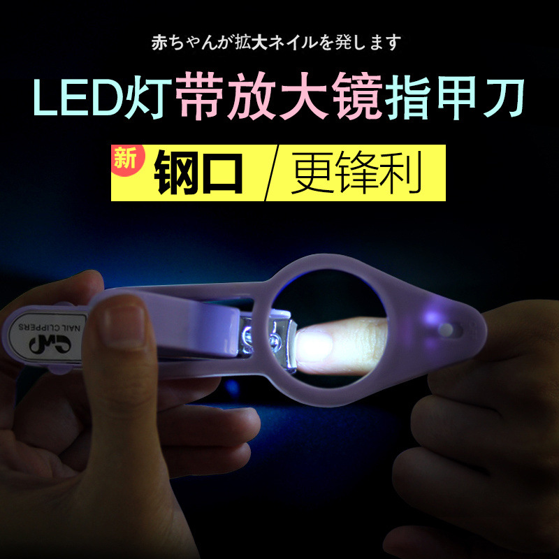 LED灯放大镜指甲剪 日本大号带灯指甲钳 老年人儿童防飞溅指甲刀