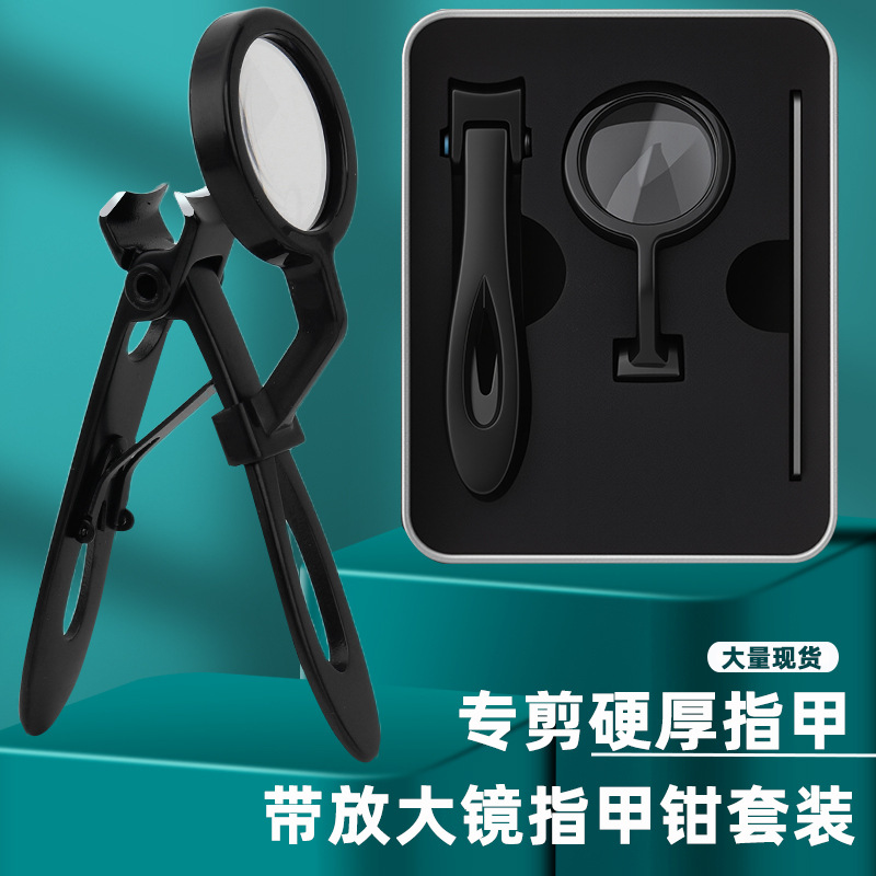 不锈钢放大镜指甲钳套装老年人视力指甲刀套装修硬厚甲指甲剪大号