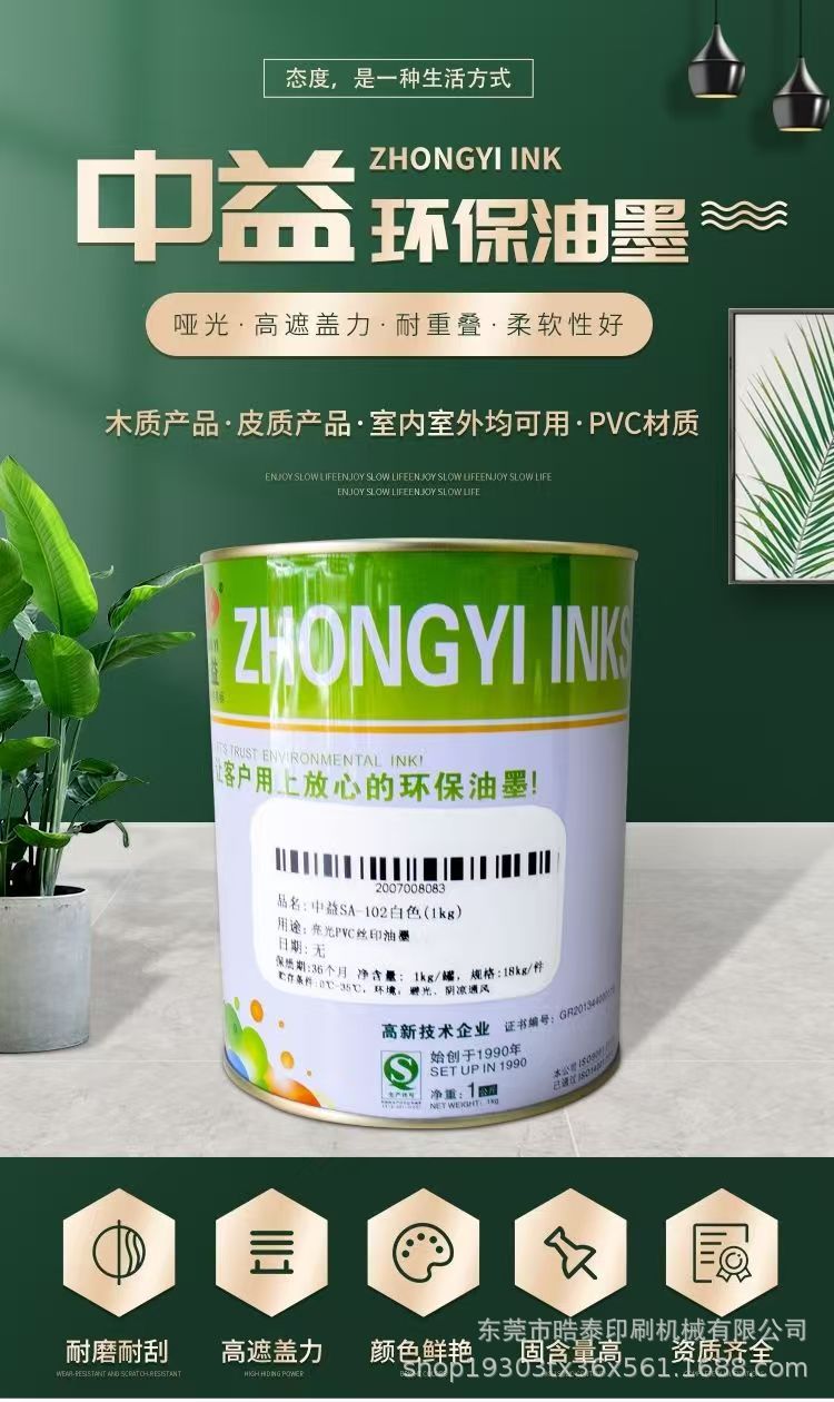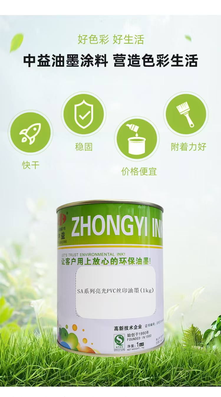 中益SA亮光丝印移印PVC油墨纸张/木材/皮革油墨丝网印刷环保油墨