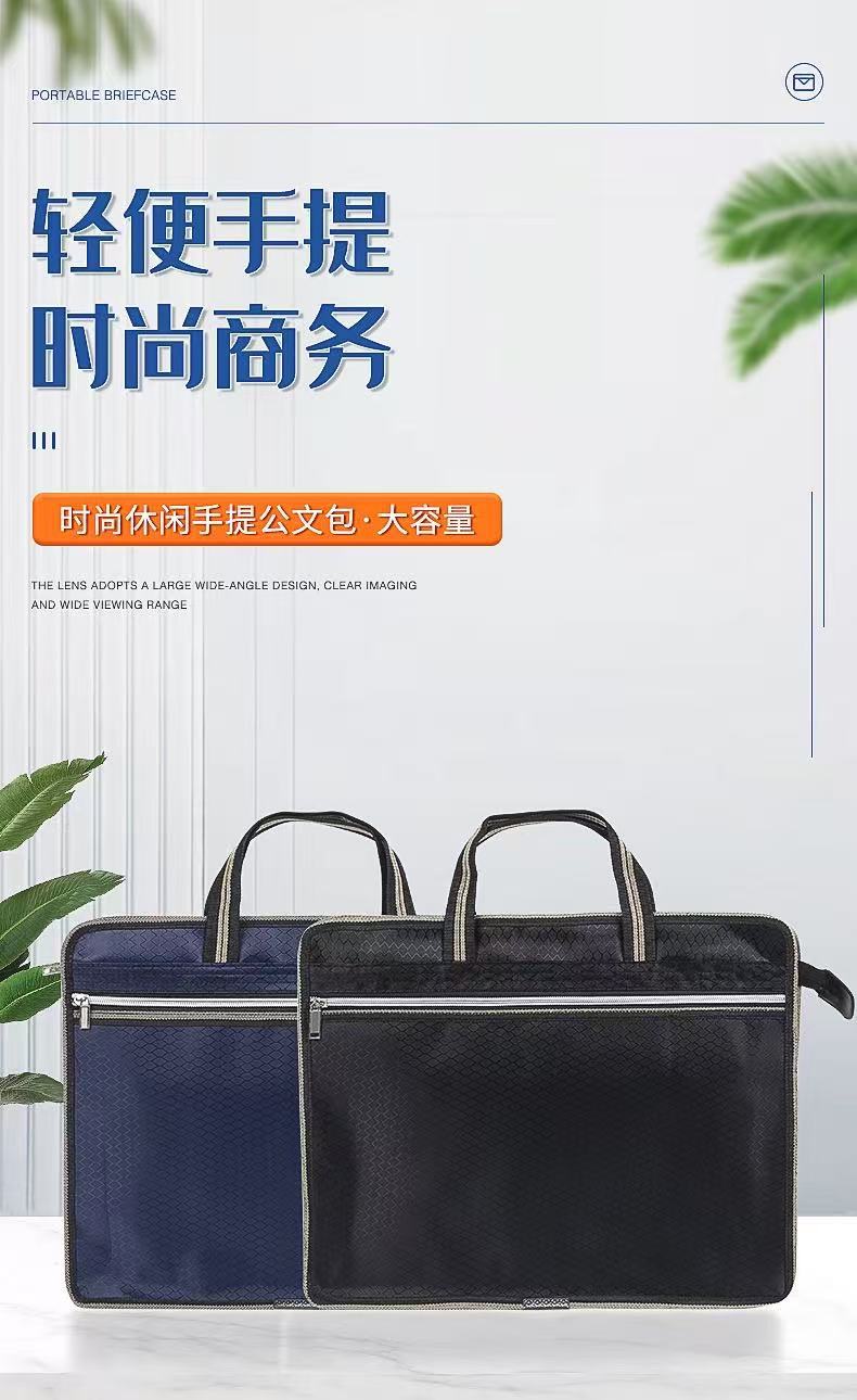 商务公文包手提双层拉链牛津布拉链文件袋办公资料收纳包轻便耐用
