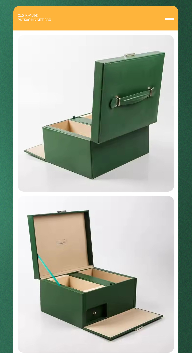 新しいハイエンドの軽い高級PUレザーボックスカスタムメイドクリエイティブグリーンポータブルヘブンアンドアースカバー包装箱ギフトボックス