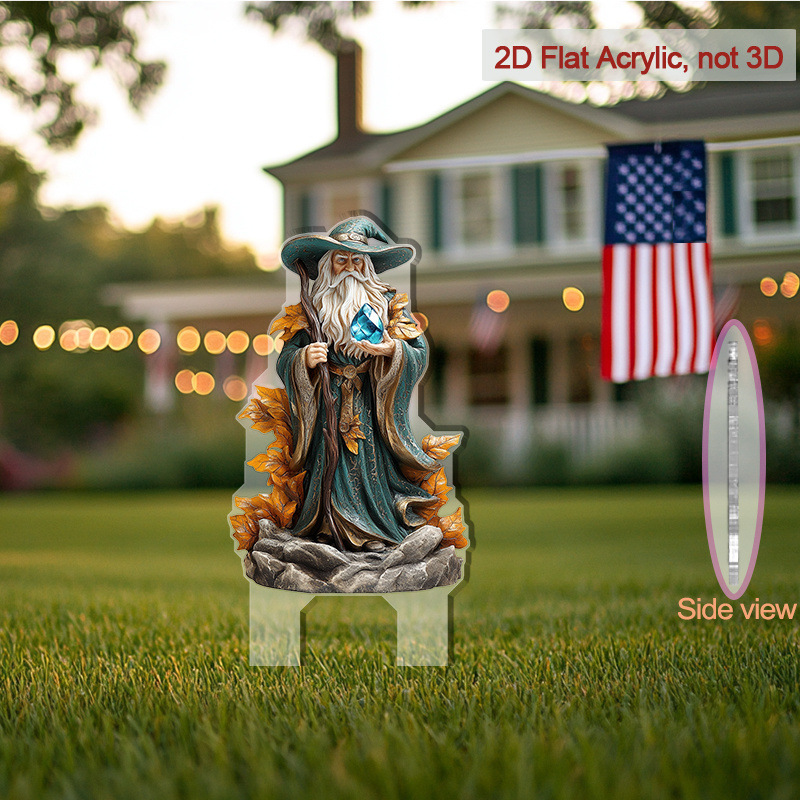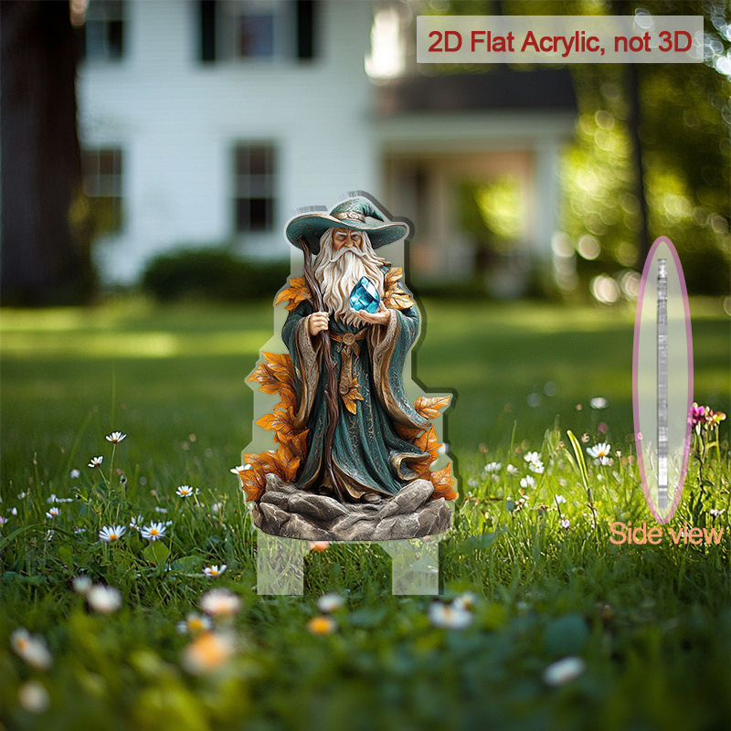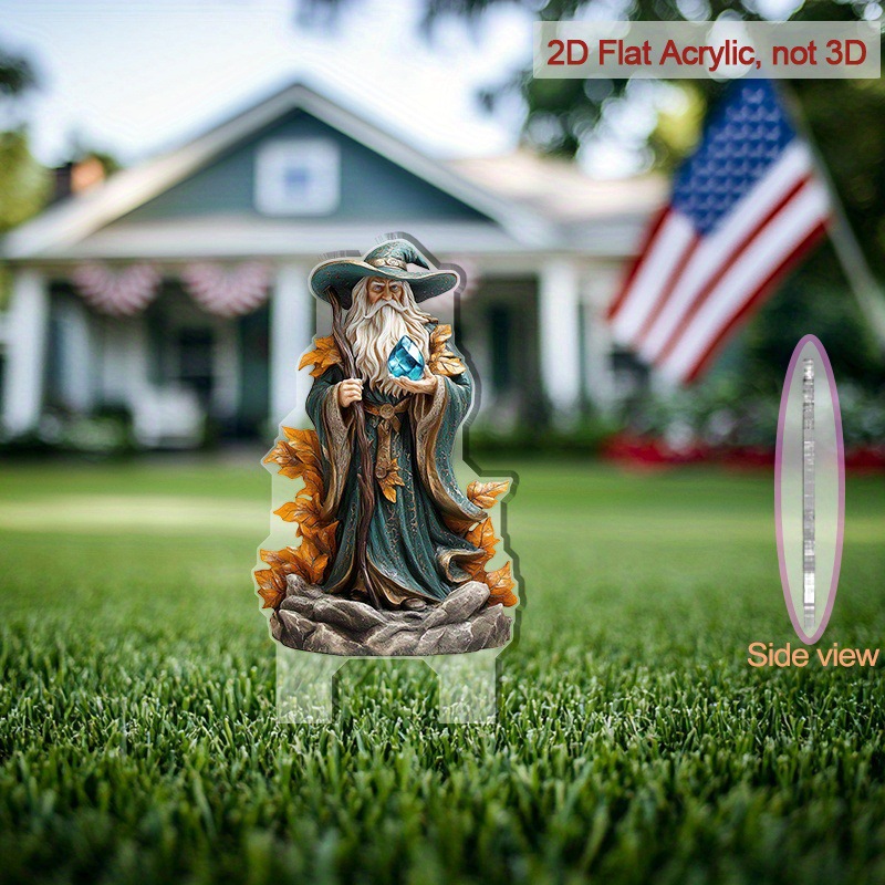 2D フラットアクリル古代魔法使いの置物 - 電源不要の伝統的なファンタジー装飾、適用可能