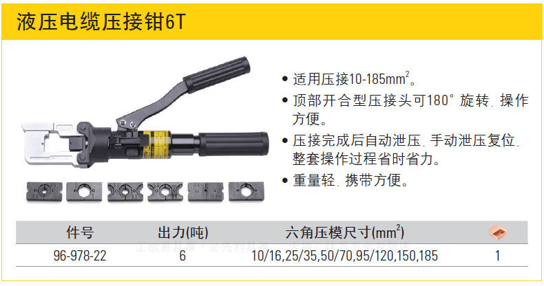STANLEY/スタンレー 6T/6トン 油圧ケーブル圧着ペンチ 六角型 185mm 96-978-22