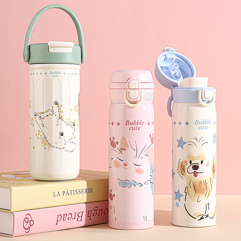 2025 新漫画断熱カップポータブルスプリング蓋ストローカップ 304 ステンレス鋼直接飲料高価値学生ウォーターカップ