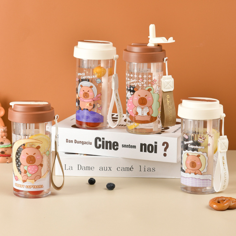 新商品のカピバラコップのプラスチックコップのストローコップはお茶を飲んで分離します。