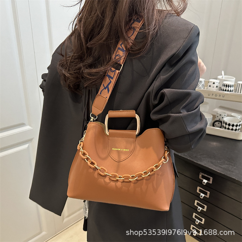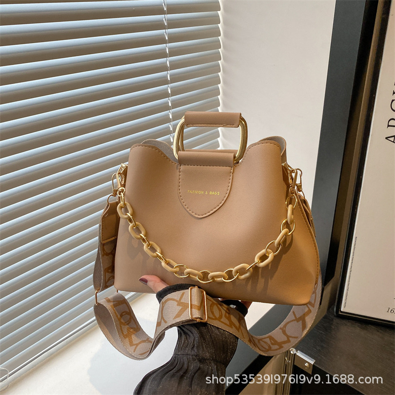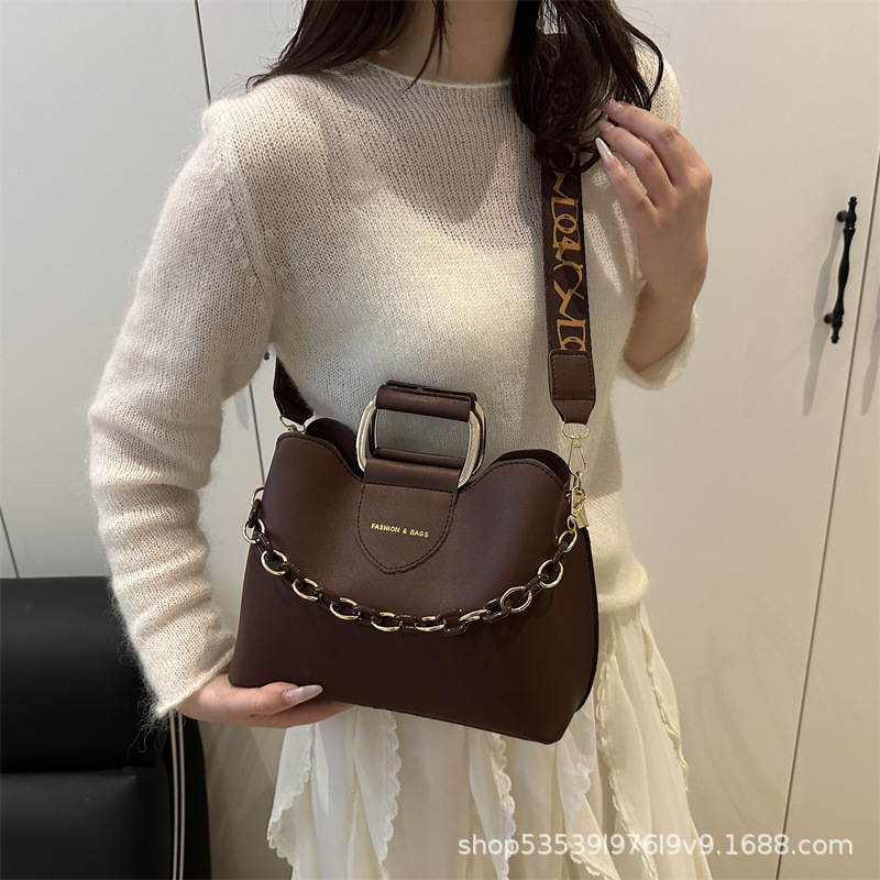 クロスボーダーレディースバッグ 2025 新しいトレンディなバケットバッグ韓国スタイルのファッションシンプルなショルダーバッグ女性のチェーン通勤ハンドバッグ