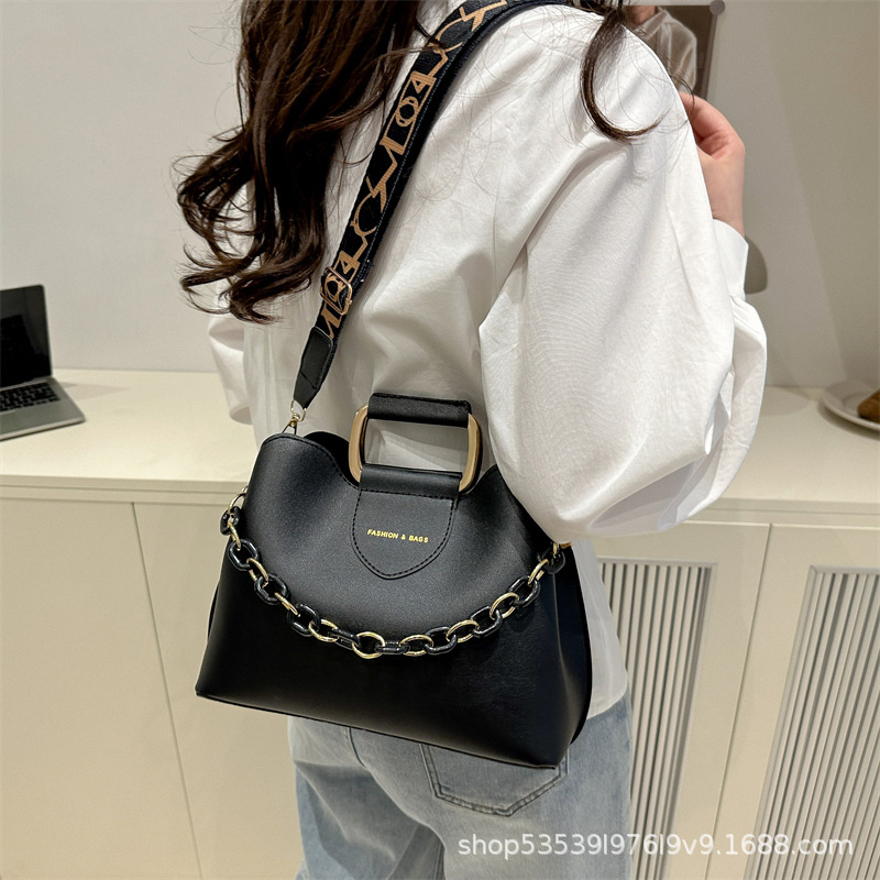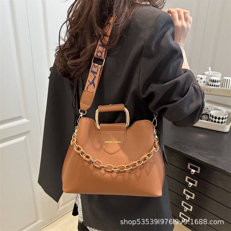 2025 新韓国スタイルソリッドカラー毎日の通勤大容量シンプルなトレンディなチェーンクロスボディショルダーハンドバッグ女性のための