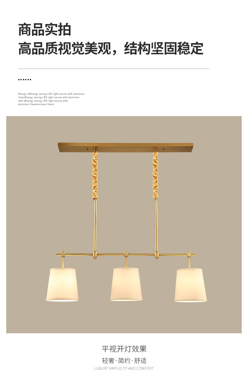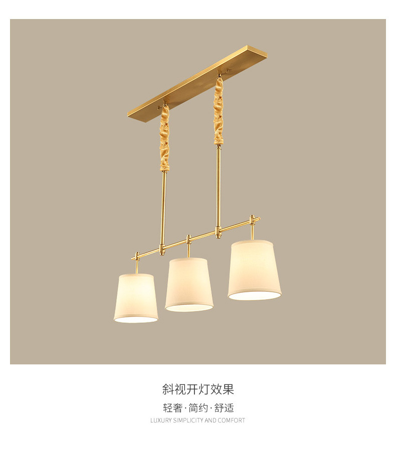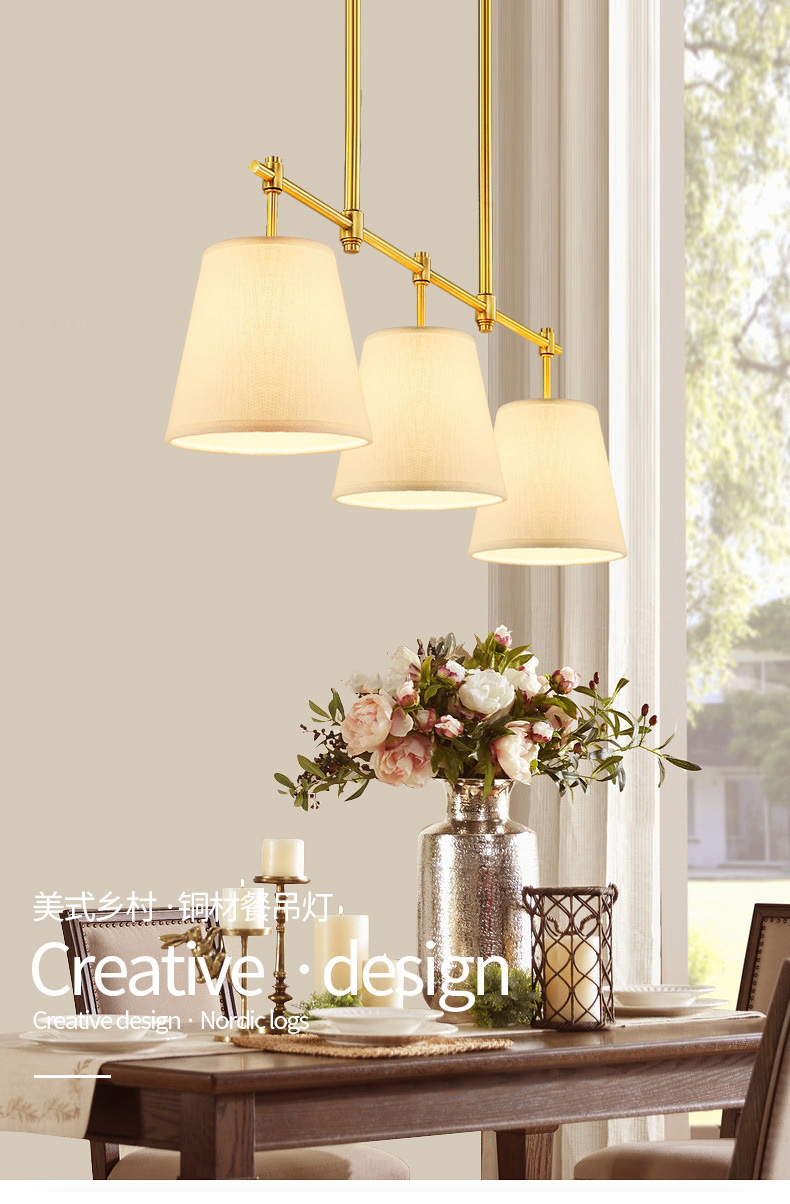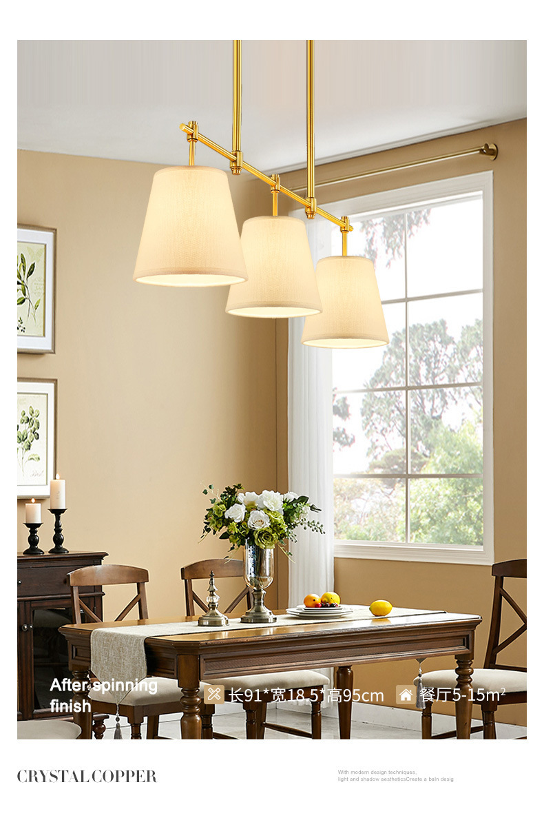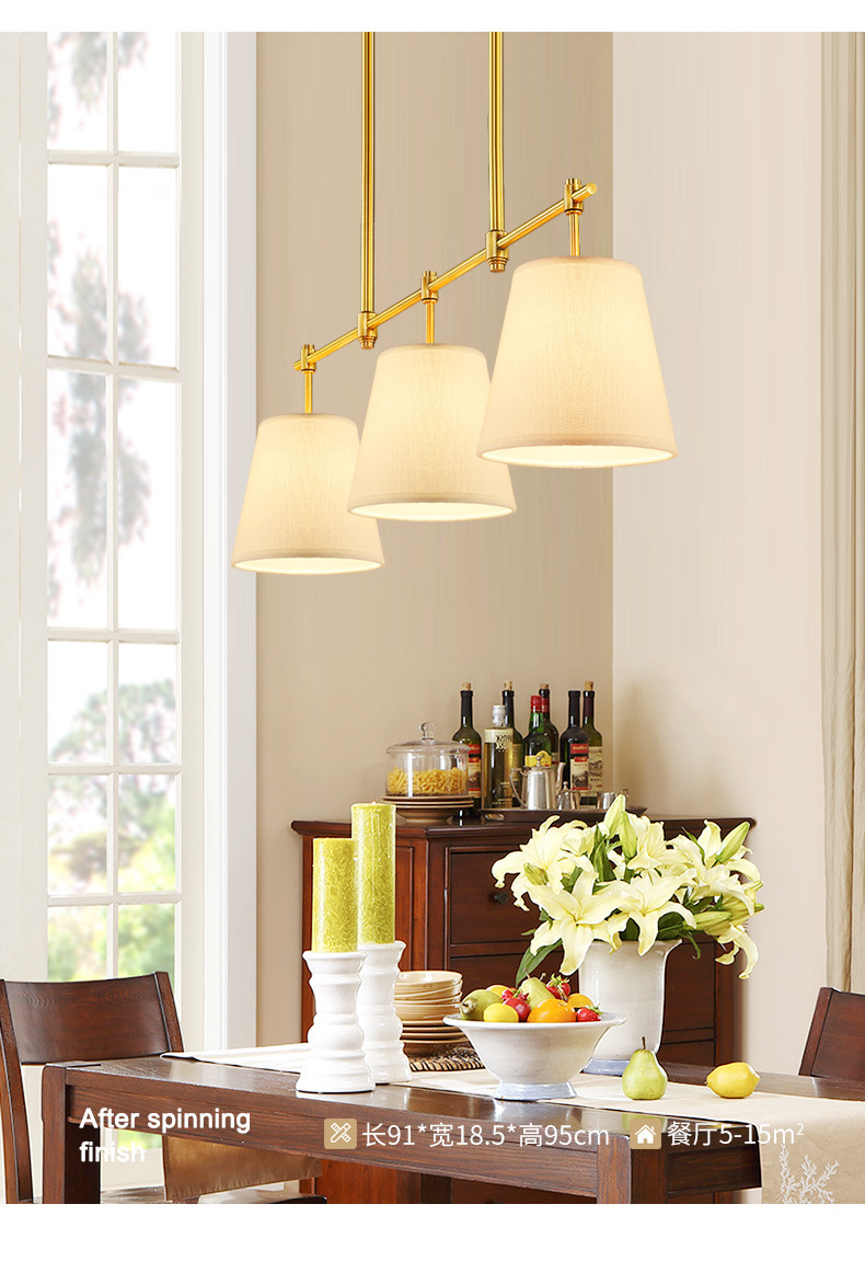 アメリカンオール銅レストランランプシャンデリア3ヘッド北欧シンプルモダンロングバーテーブルダイニングルームランプファブリックY001