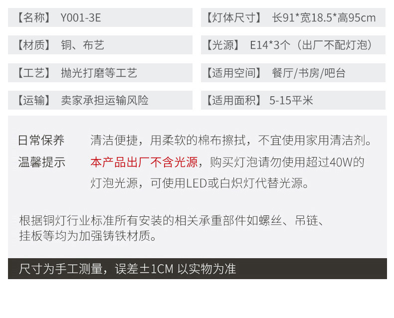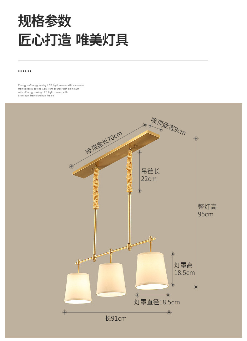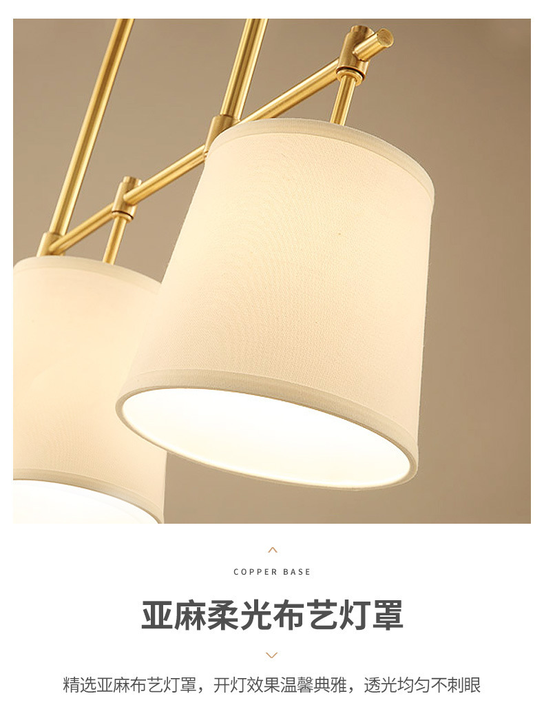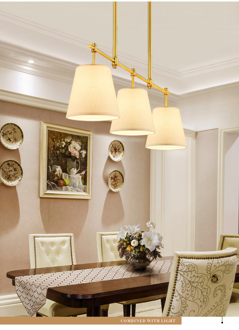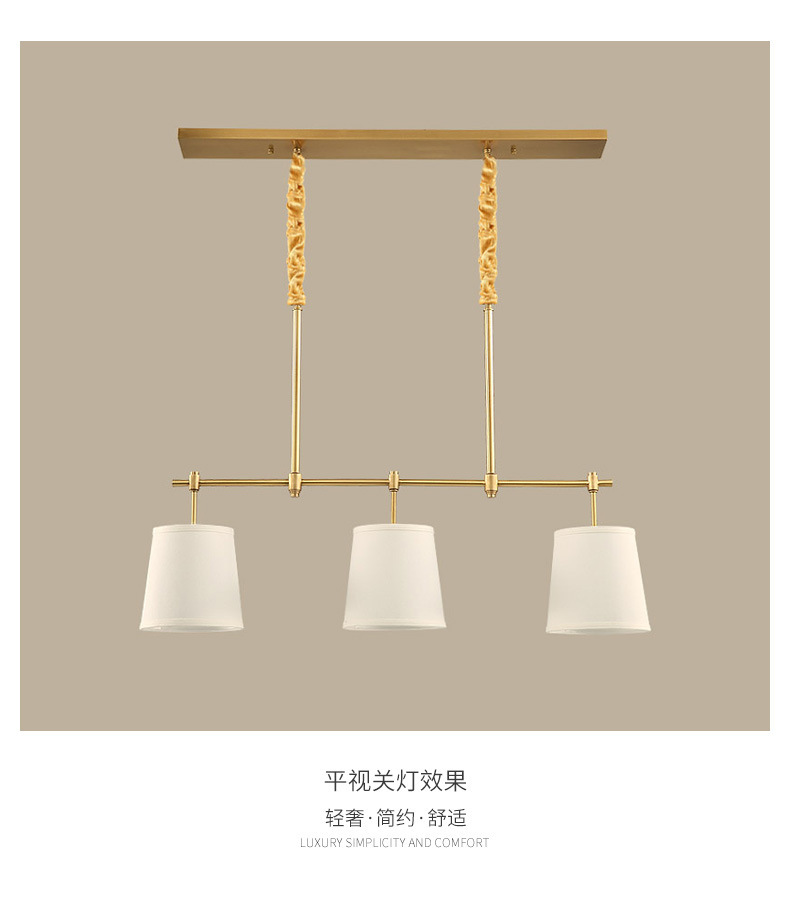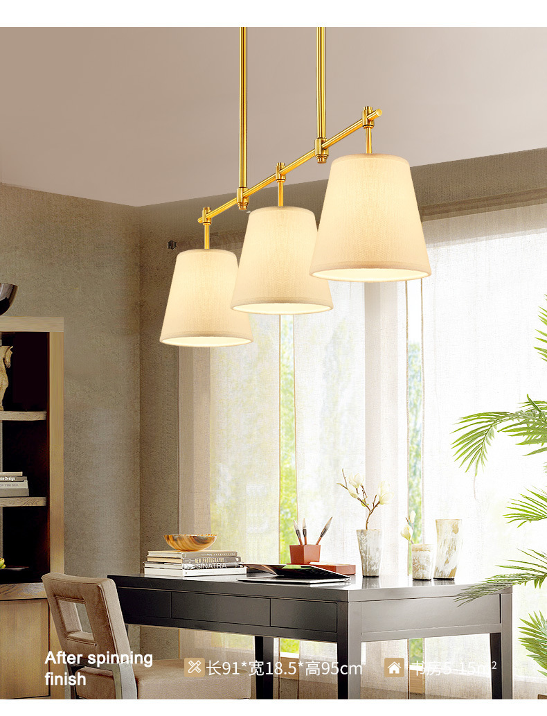 アメリカンオール銅レストランランプシャンデリア3ヘッド北欧シンプルモダンロングバーテーブルダイニングルームランプファブリックY001
