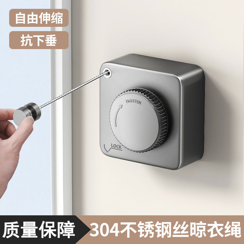 ステルス収縮壁掛け物干しロープホテルベランダ太く物干し神器ステンレスワイヤー穴なし干しロープ