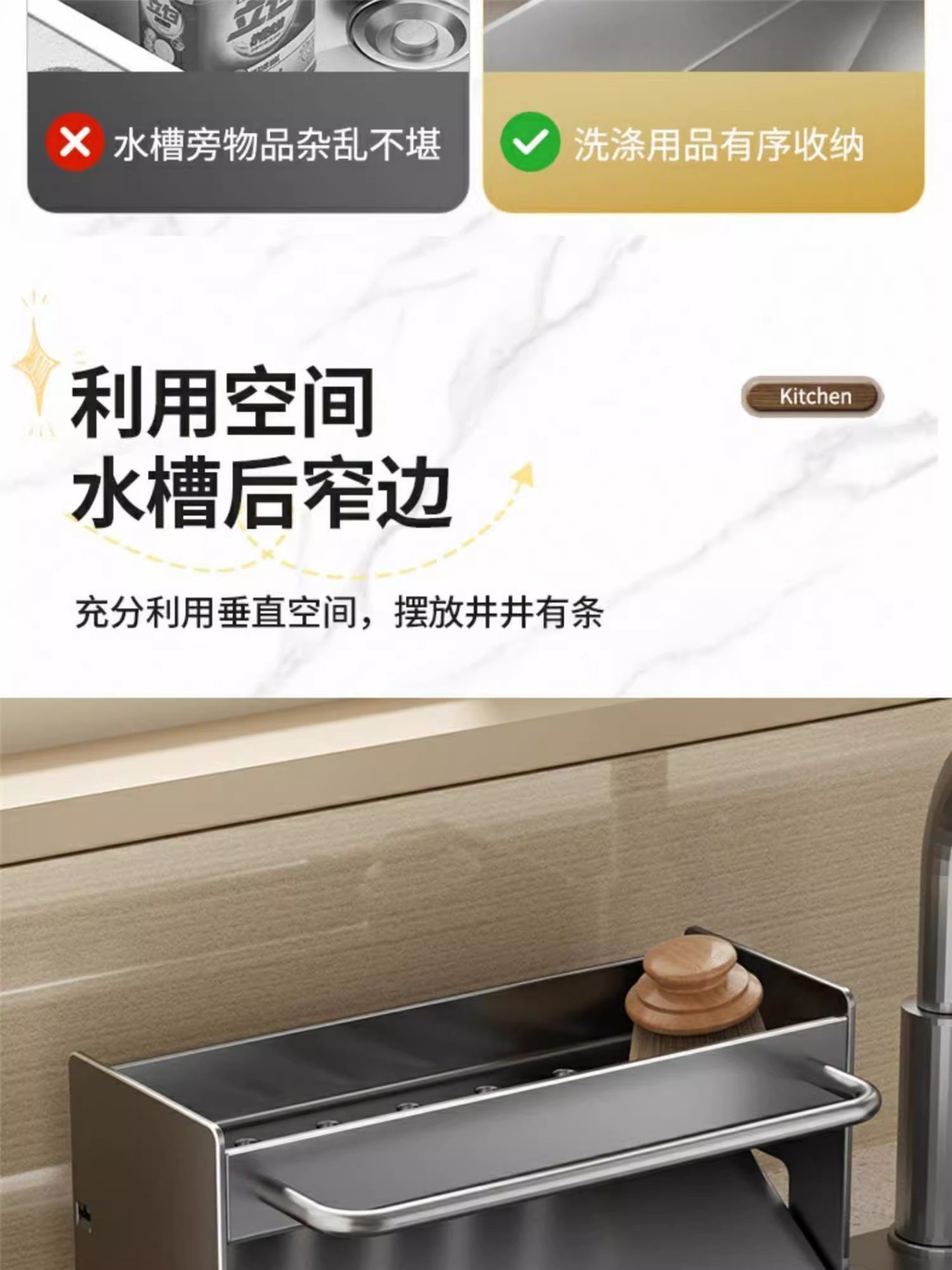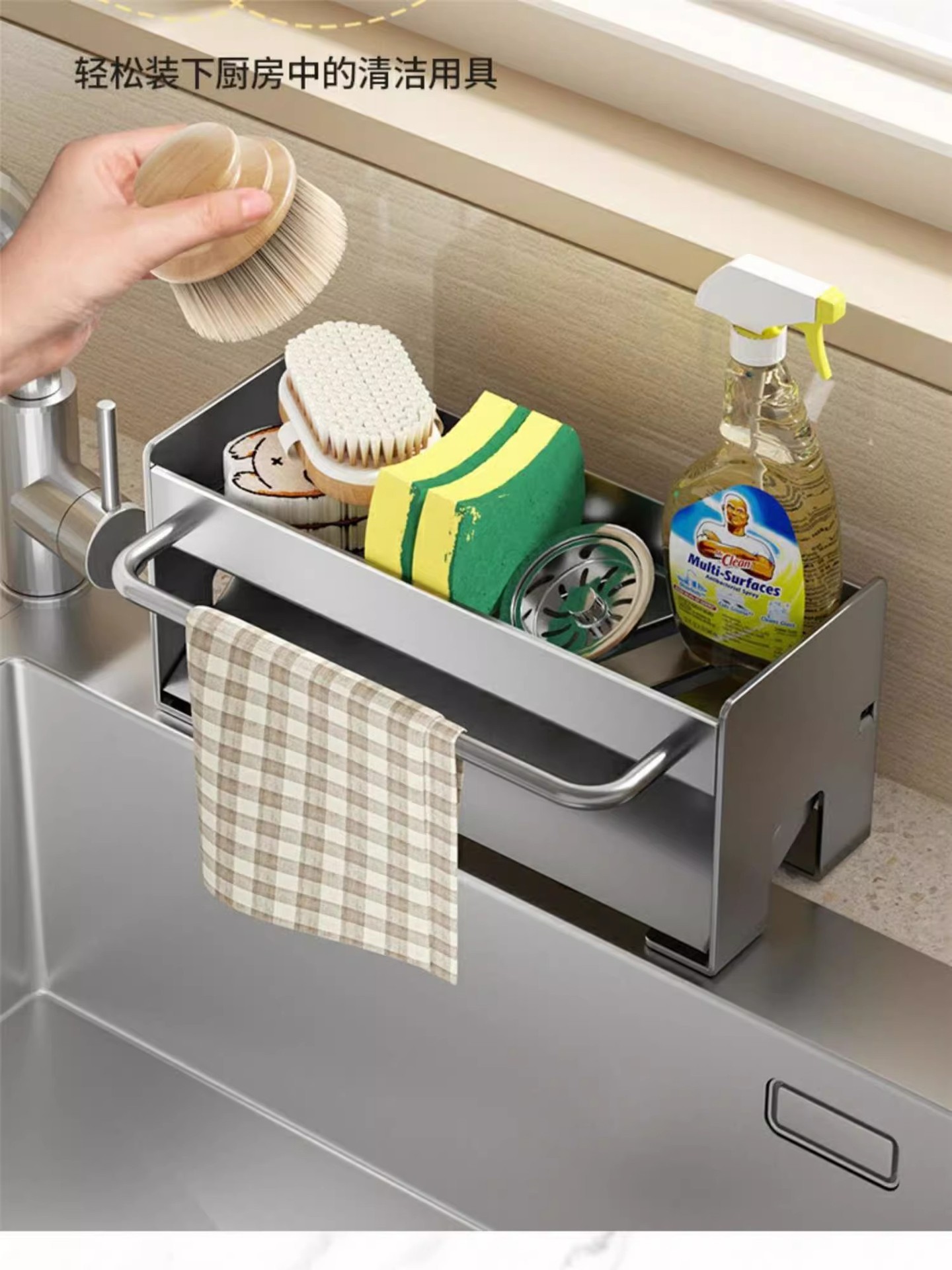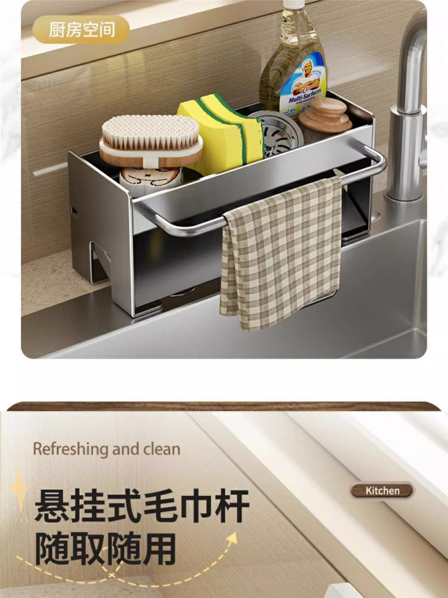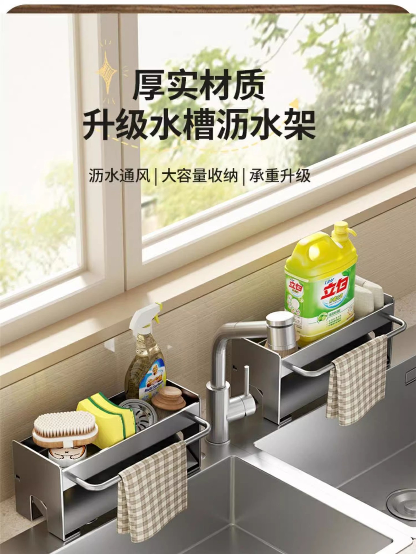 厨房水龙头置物架不锈钢水槽台面收纳架家用海绵抹布洗碗布沥水架