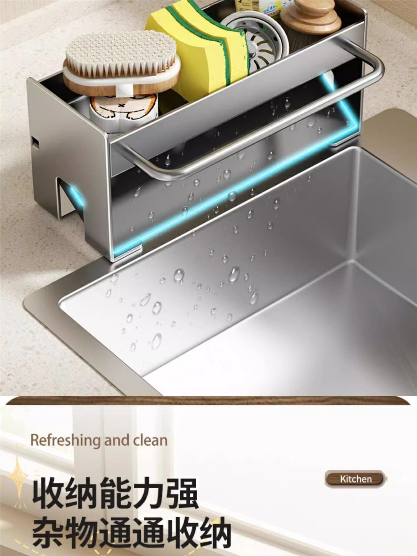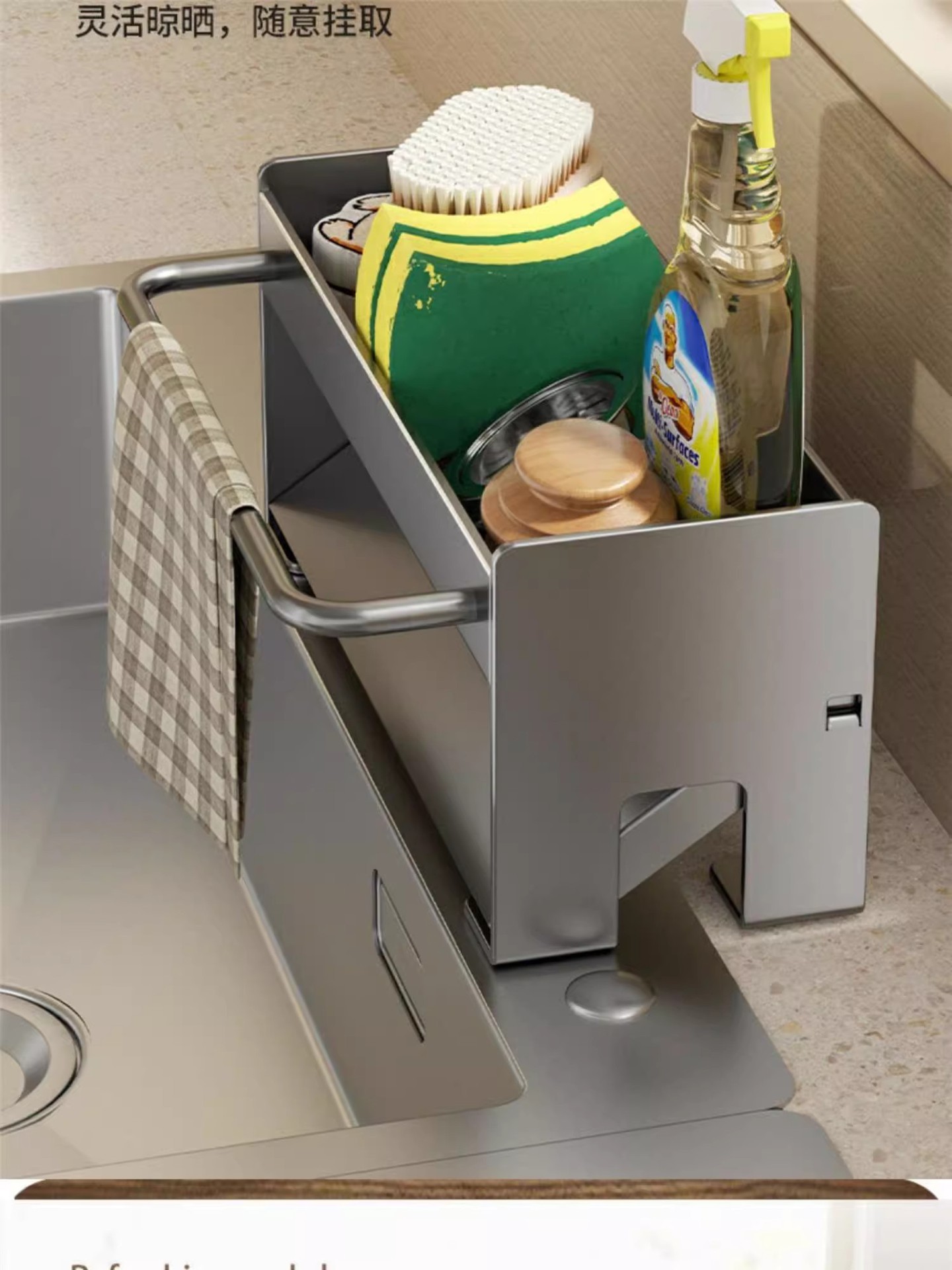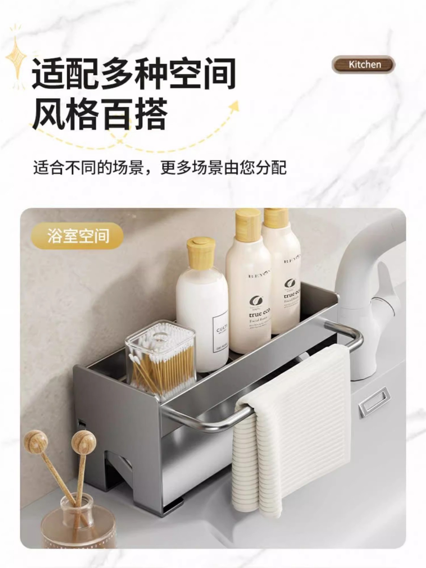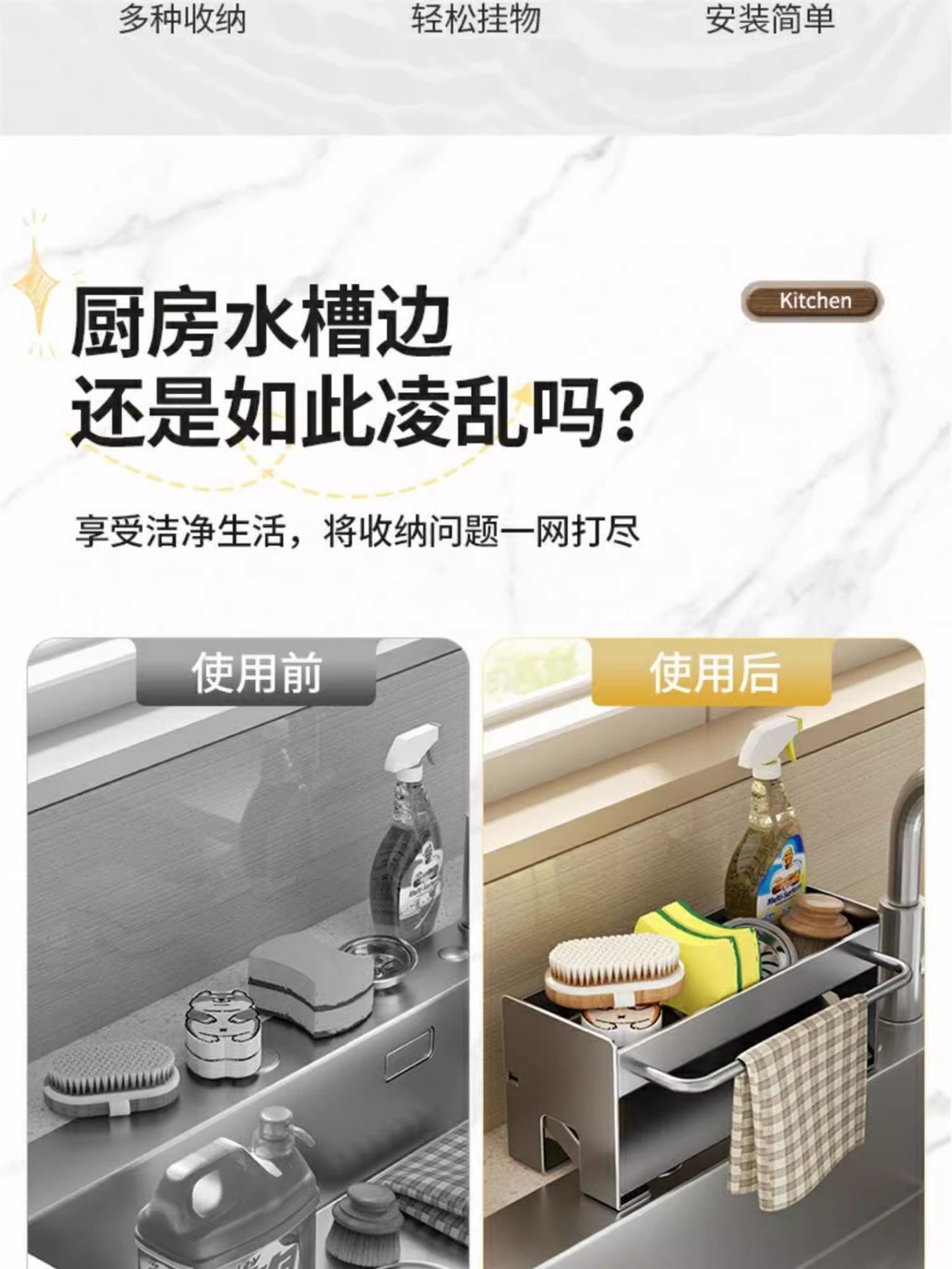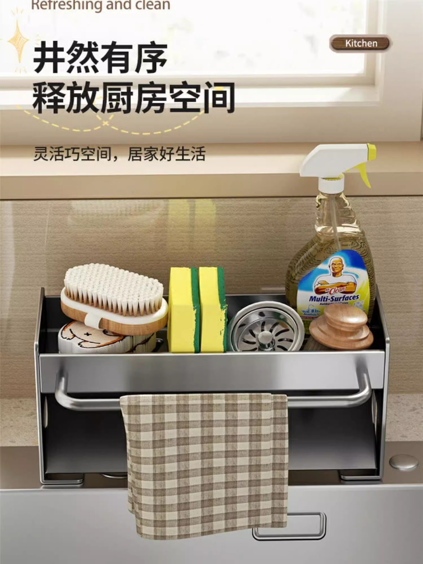 厨房水龙头置物架不锈钢水槽台面收纳架家用海绵抹布洗碗布沥水架