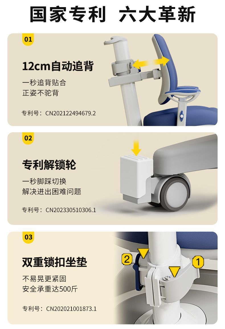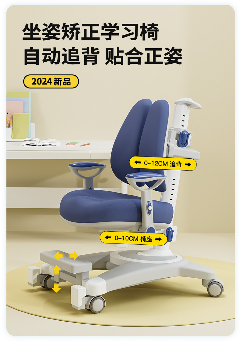 新しい子供用学習椅子、調節可能な昇降、座り姿勢の矯正、小中学生向けのライティングスツール、自動バックチェア