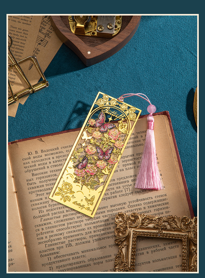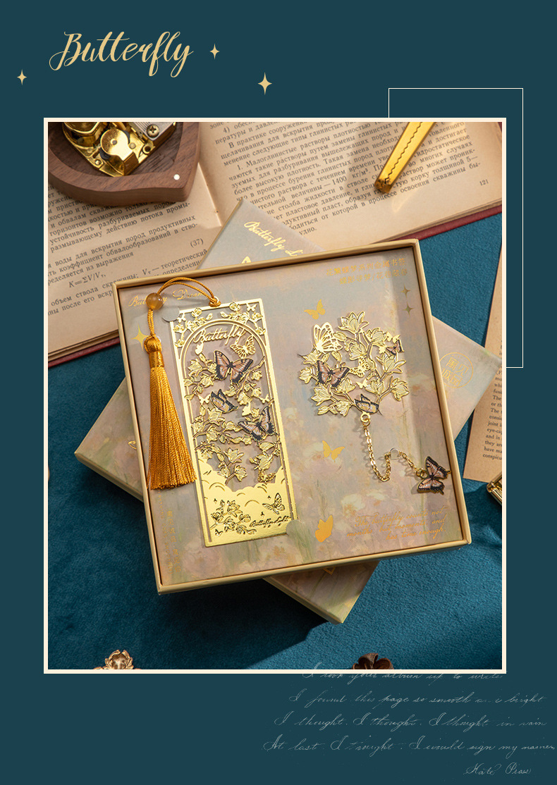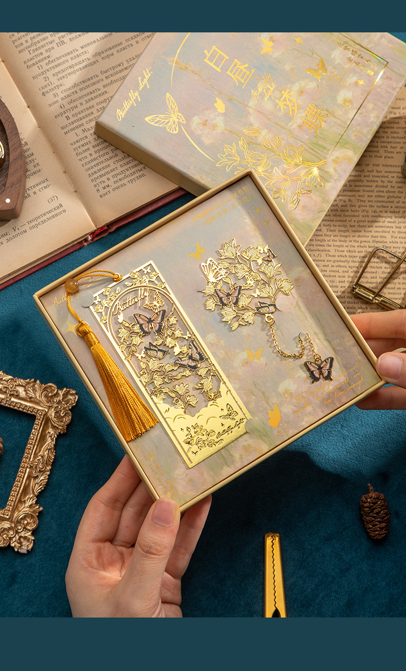 花と蝶の夢のしおりギフトボックスクリエイティブクリエイティブホリデーギフトお土産ハイエンドメタルタッセルしおりギフトボックス