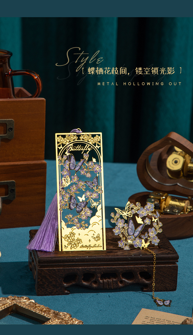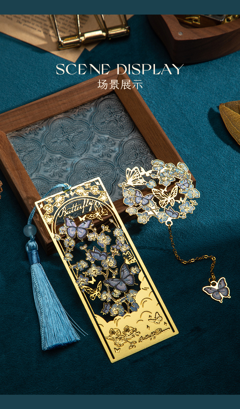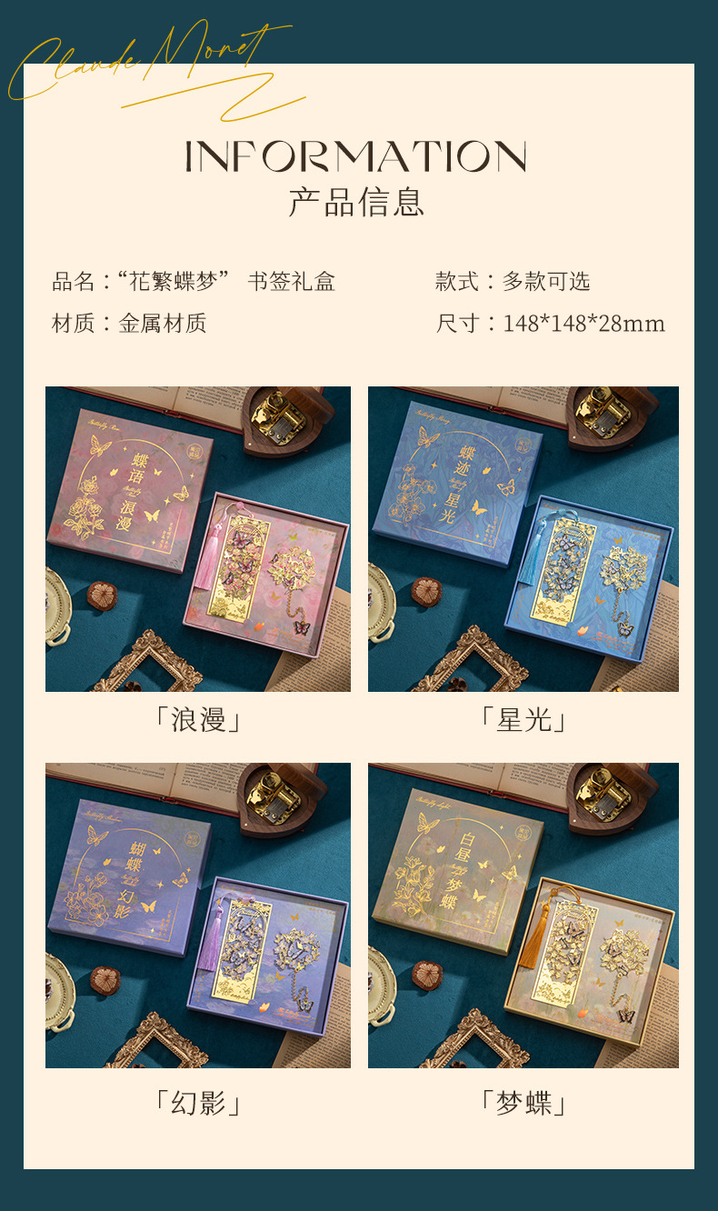 花と蝶の夢シリーズ金属タッセルブックマークギフトボックス中国風学生クリエイティブギフトセットブックマークギフトボックス