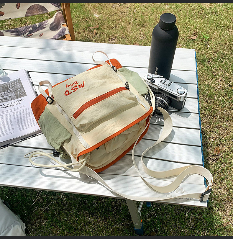 2025 新しいバックパック女性のコントラストカラー大容量バックパックレトロスタイル日常旅行多目的クロスボディバッグ